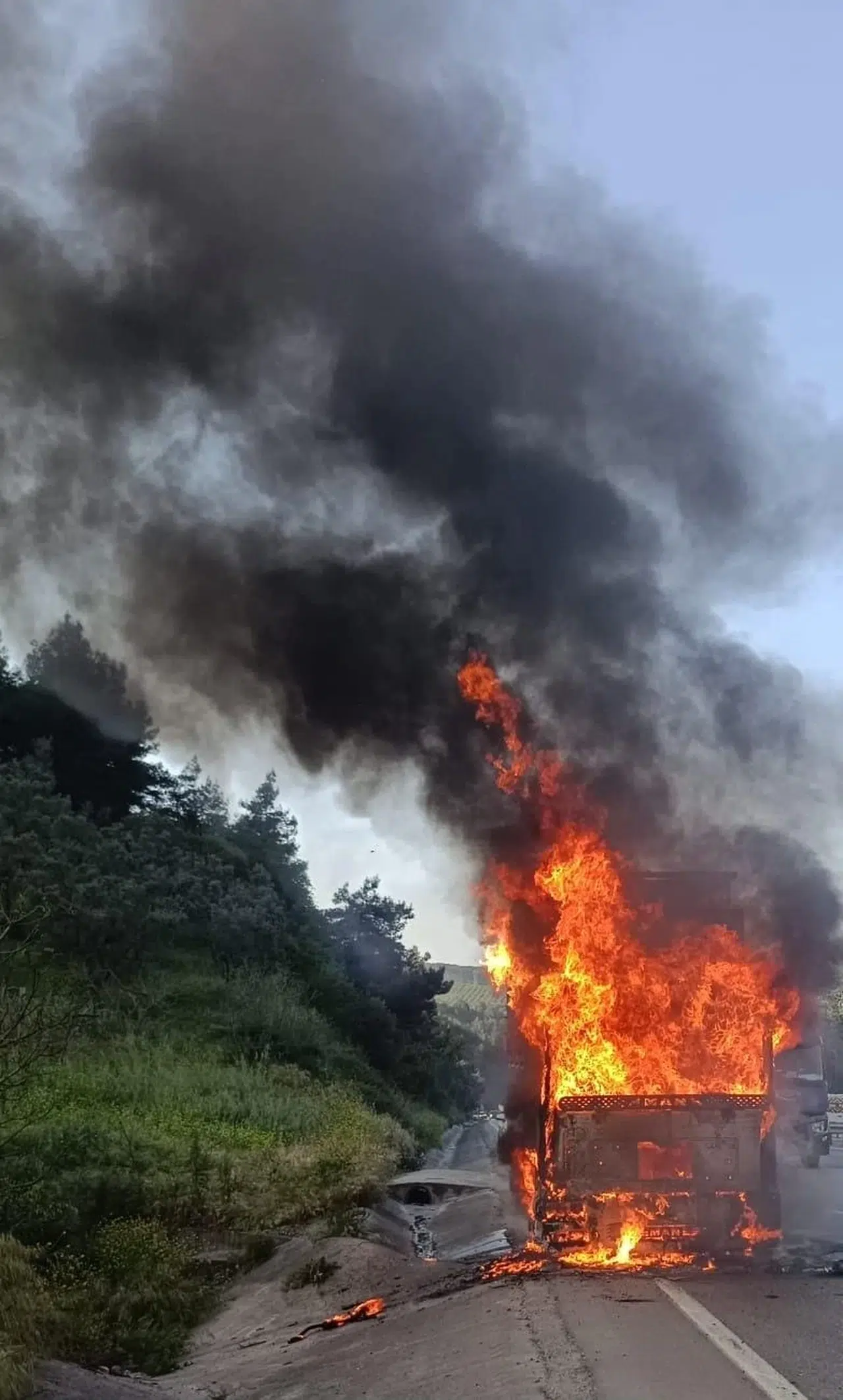 Olay saat 18.00 sıralarında merkez Osmangazi ilçesi Yalova Yolu Dürdane Mahallesi yakınlarında meydana geldi. Yalova’dan Bursa istikametine giden Mahir B. (49) yönetimindeki 16 BRM 326 plakalı kamyon, motor bölümünden yanmaya başladı. Sürücünün aracı emniyet şeridine çekip kamyondan inmesinin ardından alevler hızla yayıldı. İhbar üzerine olay yerine itfaiye ekipleri sevk edildi. Alev topuna dönen kamyondaki yangın itfaiye ekiplerinin müdahalesiyle yaklaşık yarım saatte söndürüldü. Kamyonun demir yığını haline dönüştüğü olayla ilgili inceleme başlatıldı. (DHA)