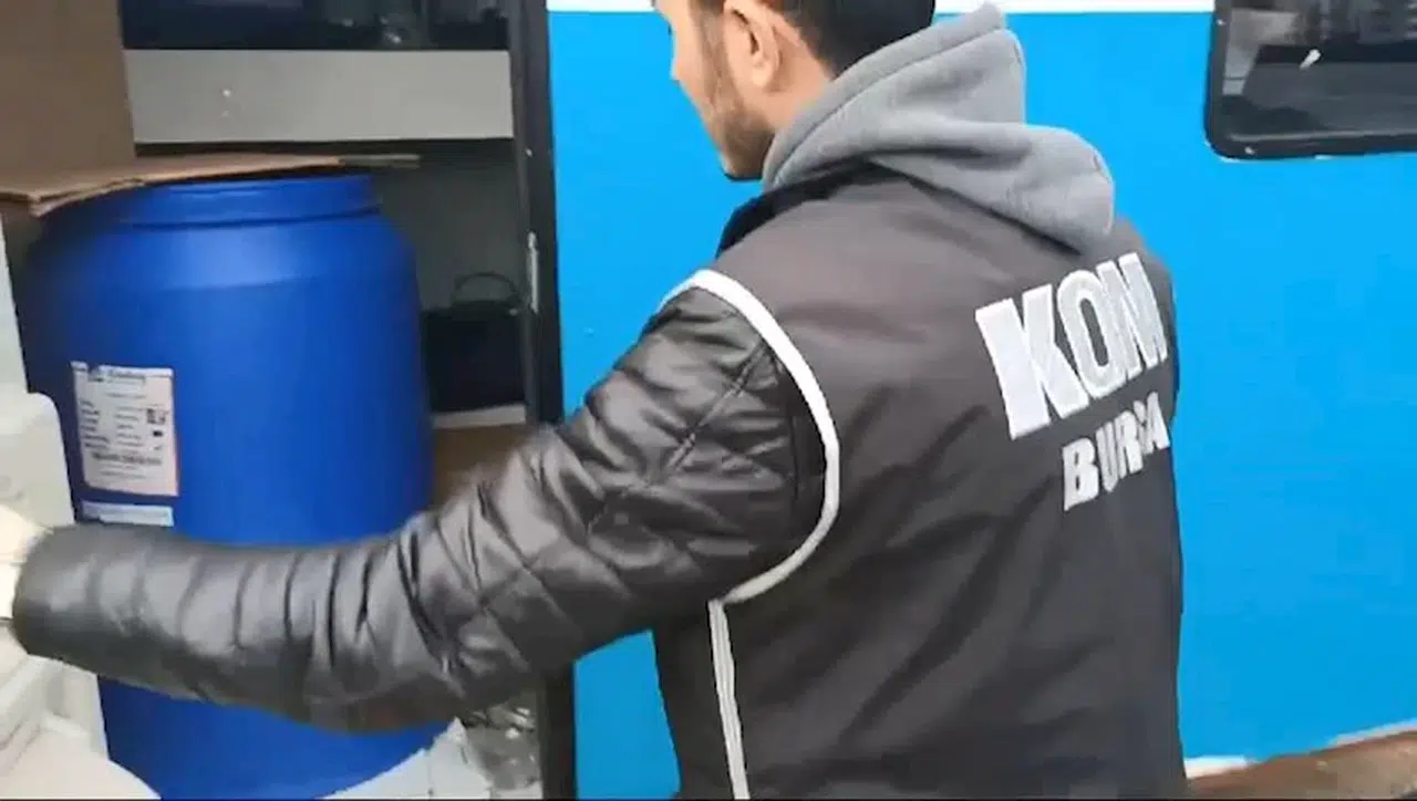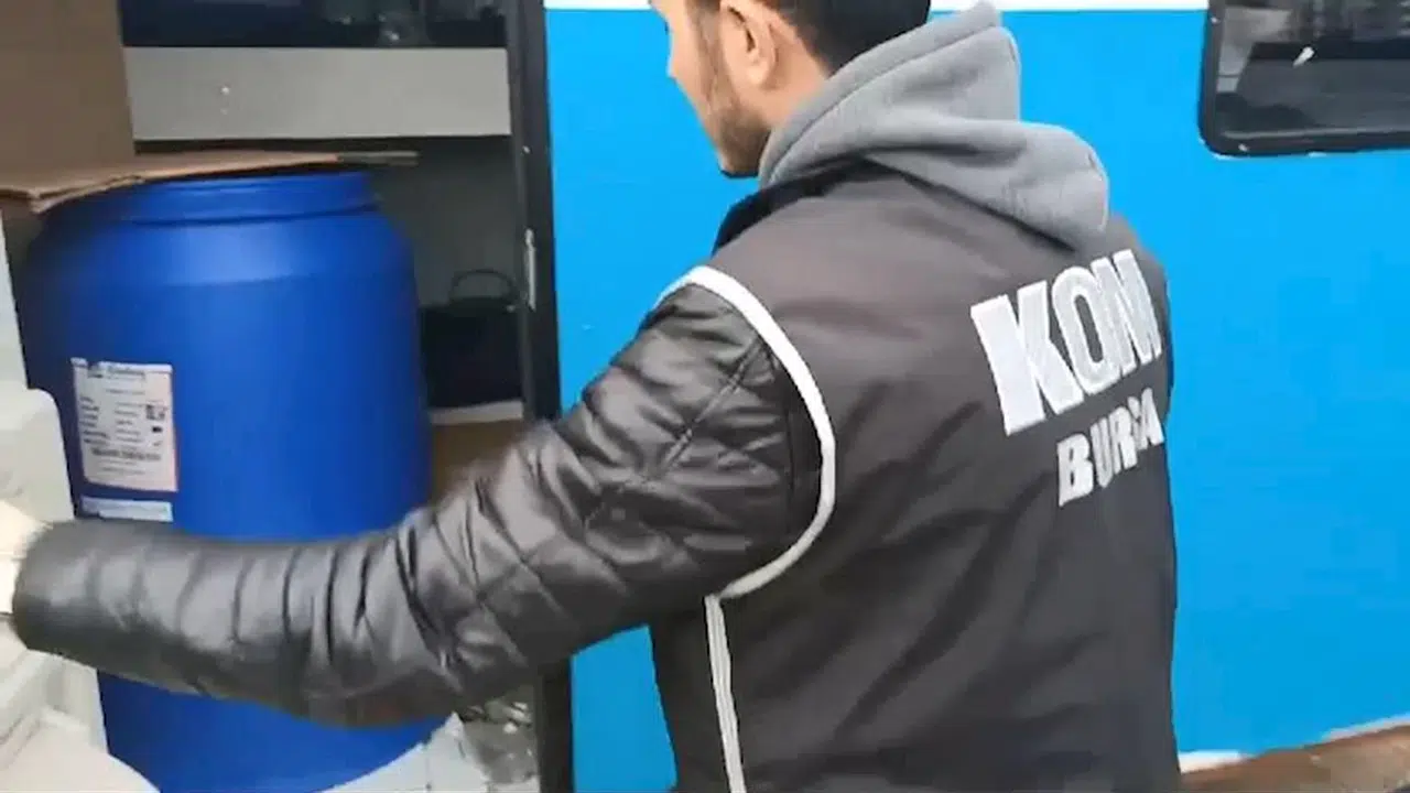 Mehmet İNAN/BURSA,(DHA)- BURSA'da, yılbaşı öncesi, 22 adrese düzenlenen eş zamanlı operasyonlarda 4 bin 735 litre etil alkol, 2 bin 702 alkol aroması, 350 sahte bandrol ele geçirilirken; gözaltına alınan 9 şüpheliden 7'si tutuklandı.