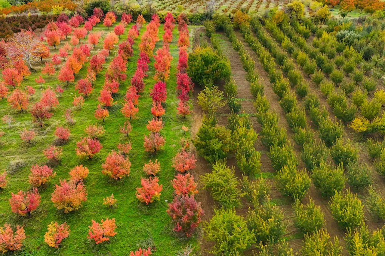 Türkiye İstatistik Kurumu’nun Adrese Dayalı Nüfus Kayıt Sistemi (ADNKS) sonuçlarına göre, 2023 yılı sonu itibarıyla, 299 bin 203 kişiyle Bursa’nın merkez dışındaki en büyük, Güney Marmara’nın ise ikinci büyük ilçesi olan İnegöl, sonbaharın gelmesi ile sarı ve yeşilin çeşitli tonlarına büründü. Santa Maria cinsi armut, şeftali ve elma bahçelerindeki renk cümbüşü, dronla havadan görüntülendi.