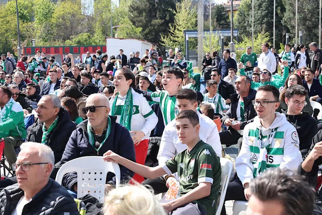 Yavuz YILMAZ/BURSA, (DHA)-BURSASPOR’un şampiyonluk yolundaki kritik Artvin Hopaspor karşılaşması, Nilüfer Belediyesi tarafından Halk Evi önünde kurulan dev ekranda yayınlandı. Alanı dolduran taraftarlar, şampiyonluk sevincini hep birlikte doyasıya yaşadı.