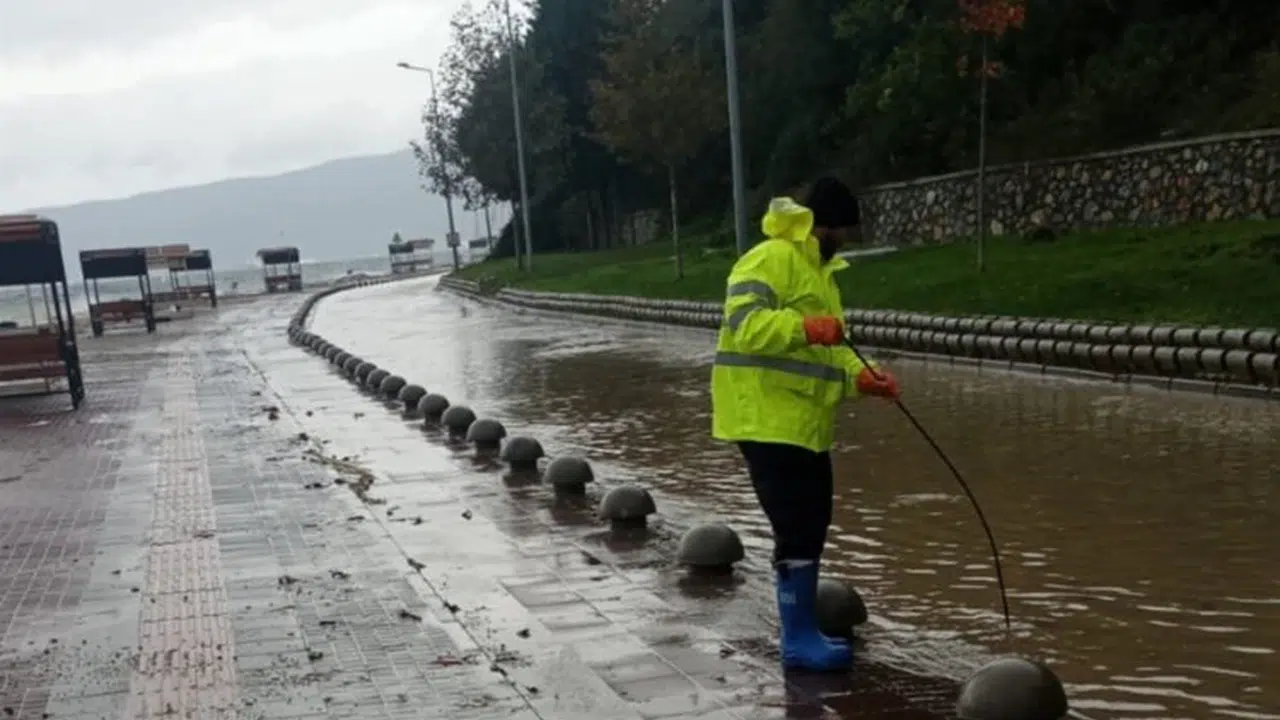 Bursa'da etkili olan sağanak yağış ve şiddetli fırtına Gemlik ve Kurşunlu'da denizin karayolu ile birleşmesine yol açtı. Büyükşehir Belediyesi'ne bağlı ekipler sahada teyakkuza geçti.