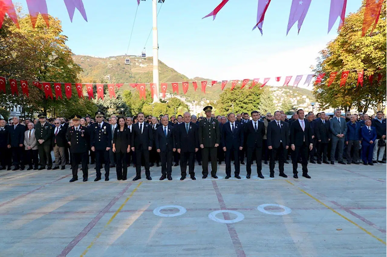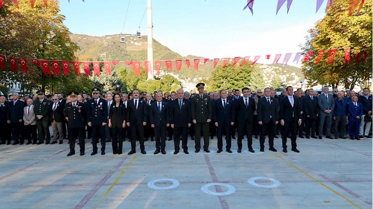 Ordu'nun Altınordu ilçesi Şarkiye Mahallesi'ndeki alanda düzenlenen törende, Vali Muammer Erol, Büyükşehir Belediye Başkanı Mehmet Hilmi Güler, Garnizon Komutanı Hava Savunma Albay Gökhan Kocaoğlu ile siyasi parti ve sivil toplum kuruluşu temsilcileri, Atatürk Anıtı'na çelenk sundu.