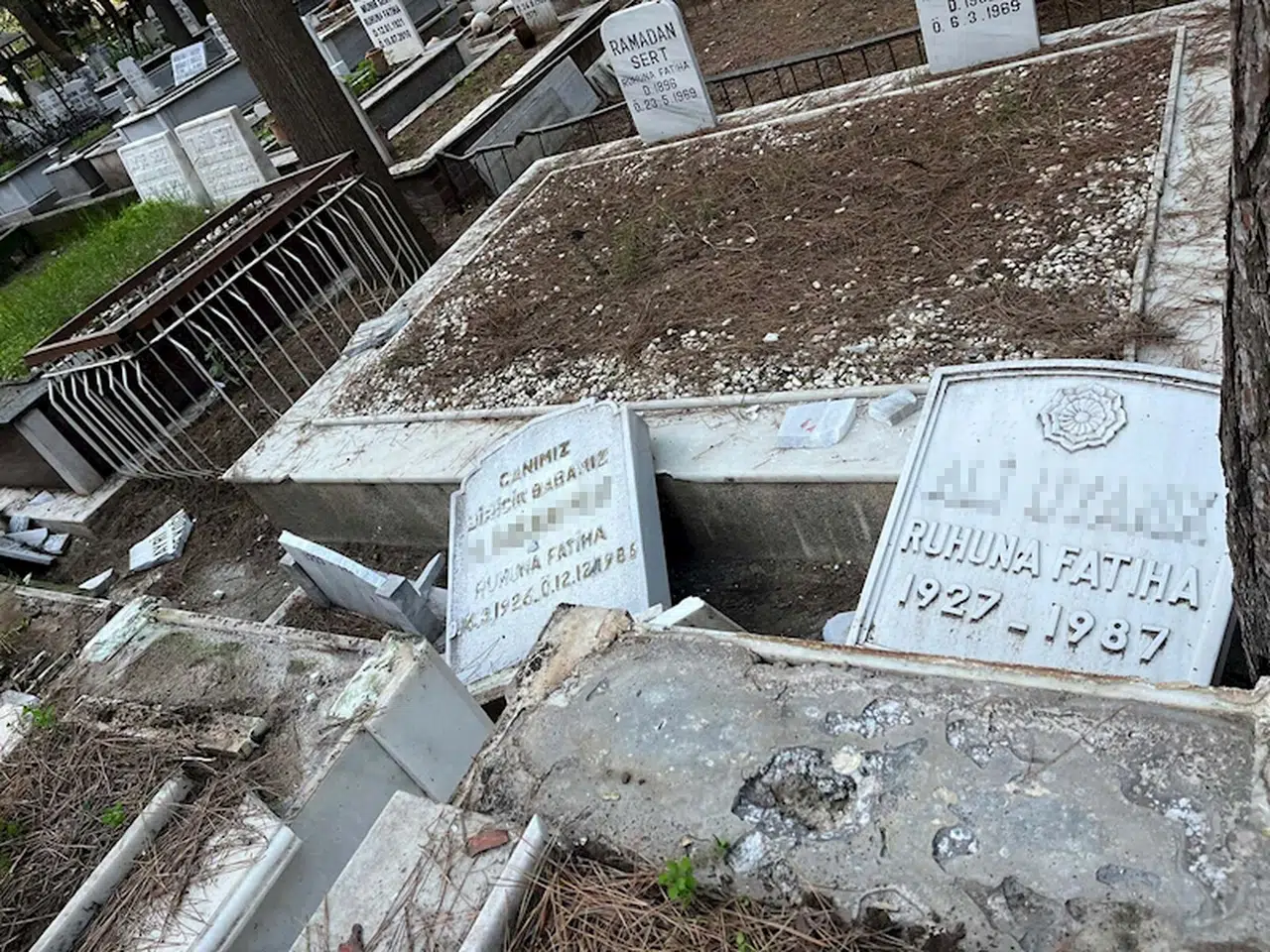 PARÇALANAN MEZAR TAŞLARI AYNI ŞEKİLDE ÜRETİLEREK TAKILACAK