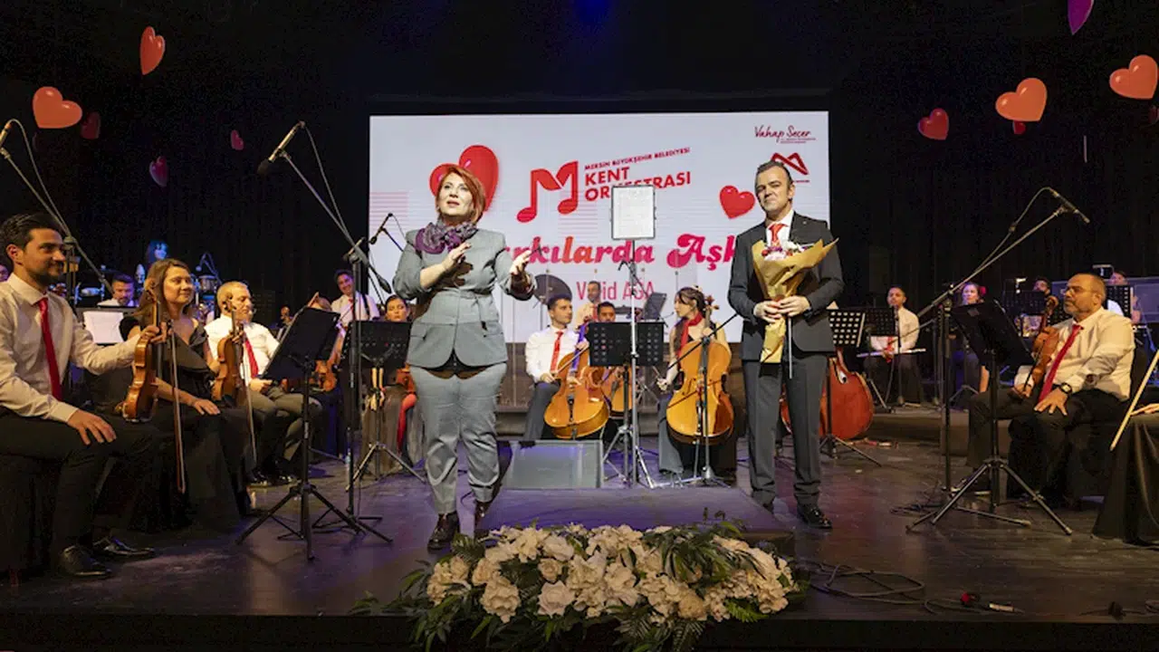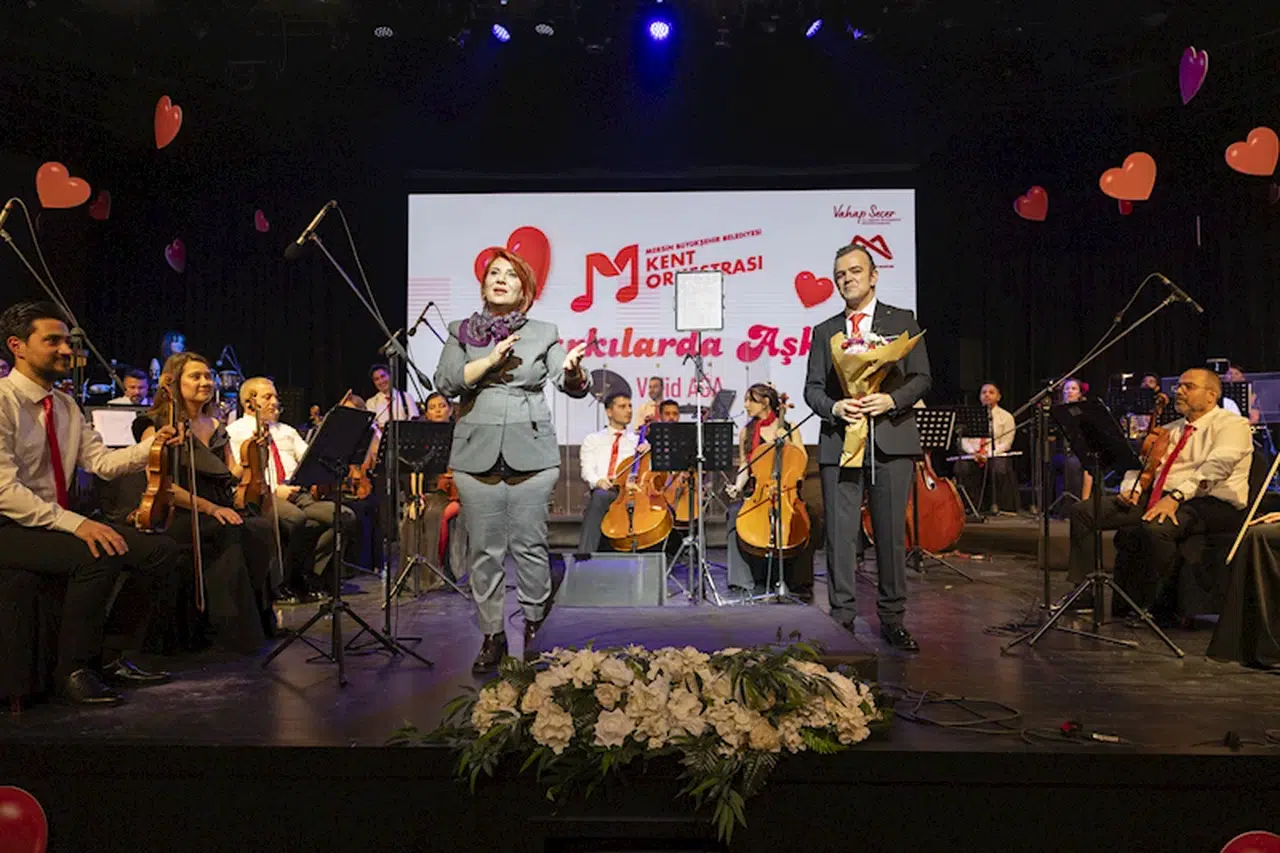 MERSİN, (DHA)-MERSİN’de kentin kültür ve sosyal yaşamına katkı sunacak etkinlikleri her yaştan vatandaşlarla buluşturan Büyükşehir Belediyesi, 14 Şubat Sevgililer Günü dolayısıyla ‘Şarkılarda Aşk’ temasıyla konser düzenledi.