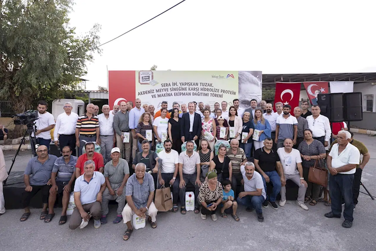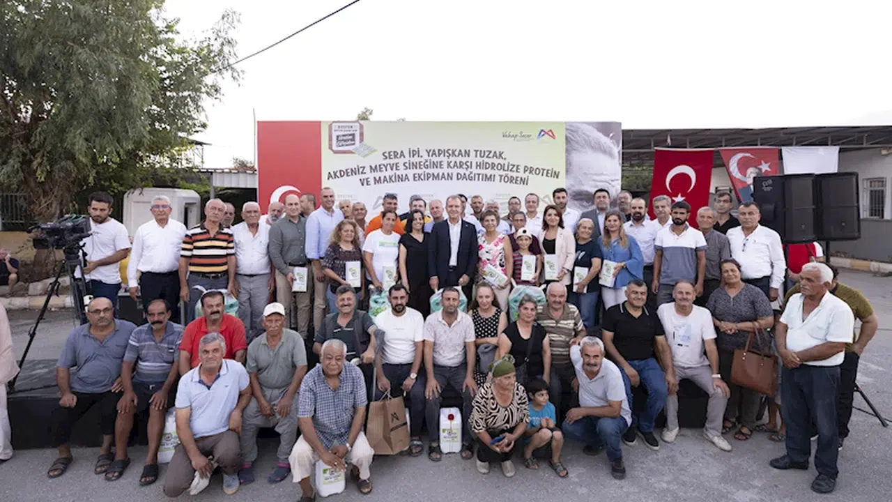 Tören kapsamında 3 bin üreticiye sera ipi, bin üreticiye yapışkan tuzak, ‘Akdeniz Meyve Sineğine Karşı Hidrolize Protein Dağıtımı Projesi’ kapsamında 888 narenciye üreticisine 14 bin 170 litre hidrolize protein ve Akdeniz Ziraat Odası’na 1 adet toprak analiz cihazı desteği yapıldı.