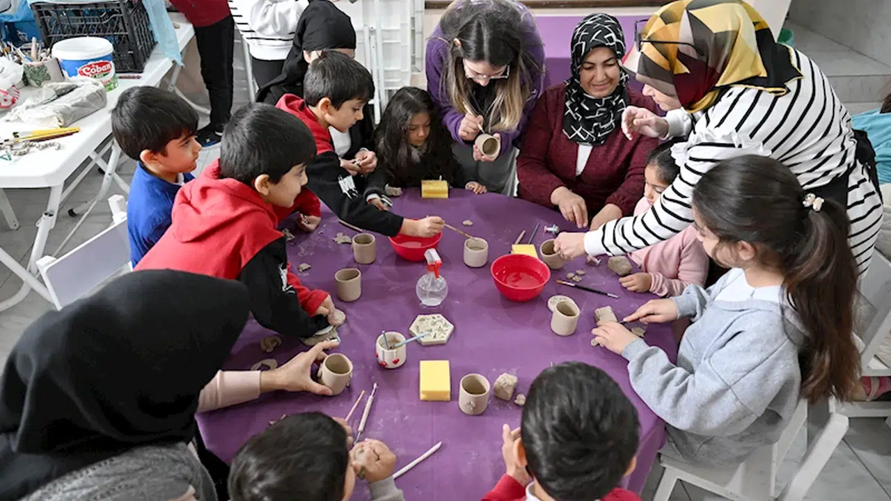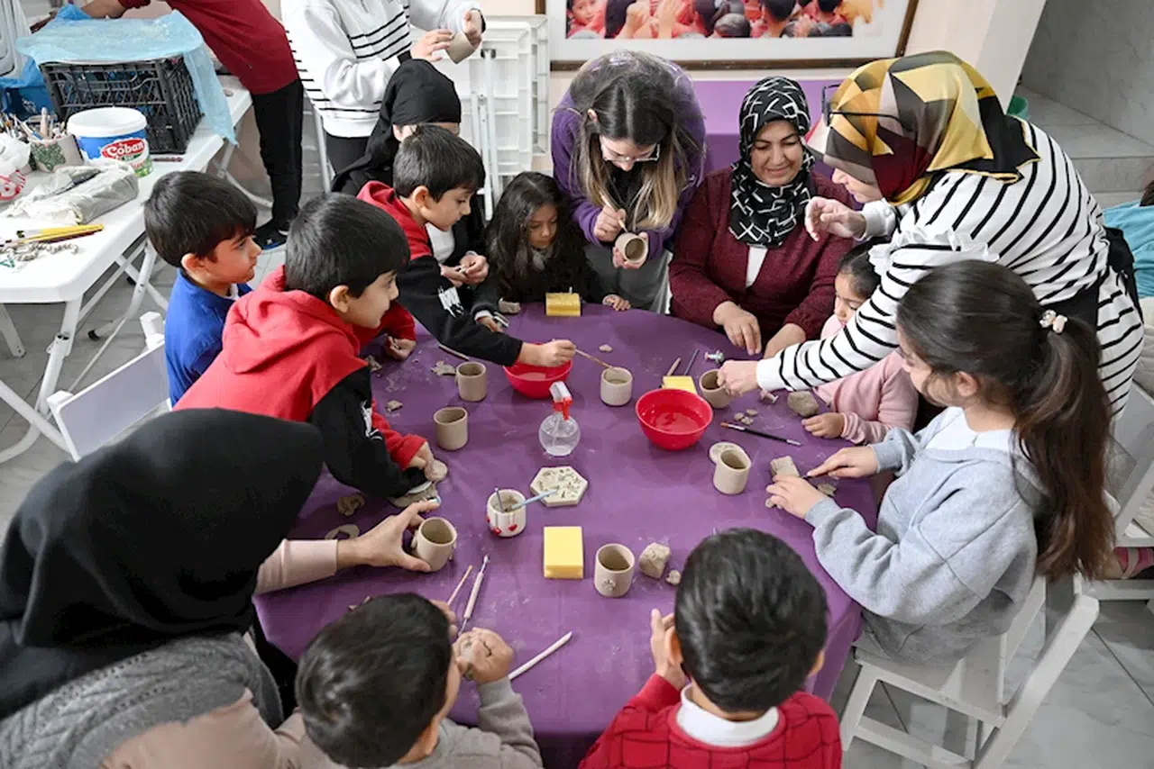 Etkinlikte, atölyeden faydalanan çocuklar anneleriyle birlikte seramik atölyesine katıldı. Anne ve çocuk ilişkisini güçlendirmeyi ve aile içi iletişimi artırmayı amaçlayan etkinlikte, çocuklar anneleriyle birlikte seramik hamuru yoğurdu. Yaratıcılıklarından ilham alarak seramik hamuruna şekil veren anne ve çocuklar, ardından yaptıkları seramik figürlerini rengarenk boyadılar. Mevlana Kadın ve Çocuk Atölyesi Birim Sorumlusu Sonay Berber, atölyede her Cuma anne ve çocuk bağını güçlendirmek etkinlikler düzenlediklerini belirterek, “Etkinlikte, anne ve çocuklarımız seramikten bardak tasarladılar. Bu etkinliklerle anne ve çocuklar hem iletişim bağını güçlendirebiliyorlar, hem de bu iletişim bağı güçlendikçe kadınların kendine özgüveni artıyor. Çocuklarıyla iyi iletişim kuran ebeveynler, doğal olarak çocuklarıyla güzel bir bağ yakalamış oluyorlar. Atölyemizde, çocukların günlük yaşam becerilerini geliştirecek faaliyetler yapıyoruz ve onları hayata hazırlıyoruz. Aynı zamanda, onların mutlu olmasını sağlıyoruz. Bizim için en önemlisi, atölyede çocukların mutlu ve sevgi dolu olması” dedi.