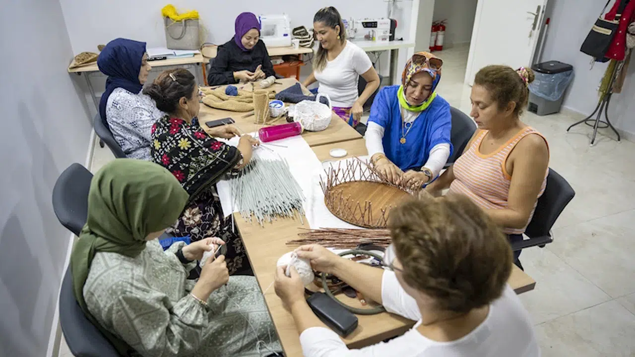 Sosyal Hizmetler Dairesi Başkanlığı Eğitim Hizmetleri Şube Müdürlüğü’ne bağlı hizmet veren MERCEK Mesleki Eğitim Merkezlerinde açılan meslek edindirme kursları sayesinde kariyer anlamında kendine yeni fırsatlar yaratmak isteyen bazı kursiyerler hobi olarak başladığı kurslardan iş sahibi olarak ayrılabiliyor. Yenişehir MERCEK’te devam eden ‘Turistik ve Hediyelik Eşya Yapımı’ kursuna gelen kadınlar çantadan sepete, duvar süslerinden takılara kadar birçok eşyanın yapımını öğreniyor. Bir araya gelerek el işi yapan kadınlar hem evden çıkıyor hem de becerilerini geliştiriyor. El emeği göz nuru ürünlerini Büyükşehir’in üretici kadın stantlarında sergileyerek satış yapma imkanı da bulan kursiyerlerin bazıları hobisini işe dönüştürerek gelir elde etmek istiyor.