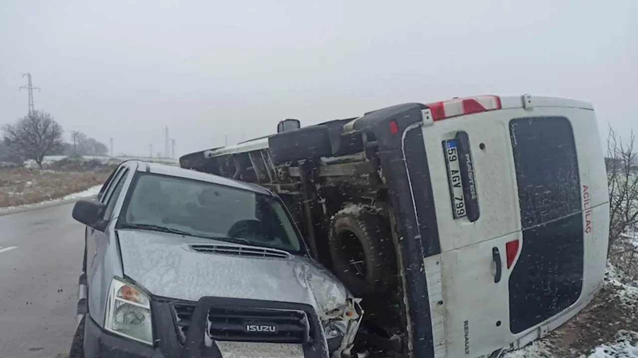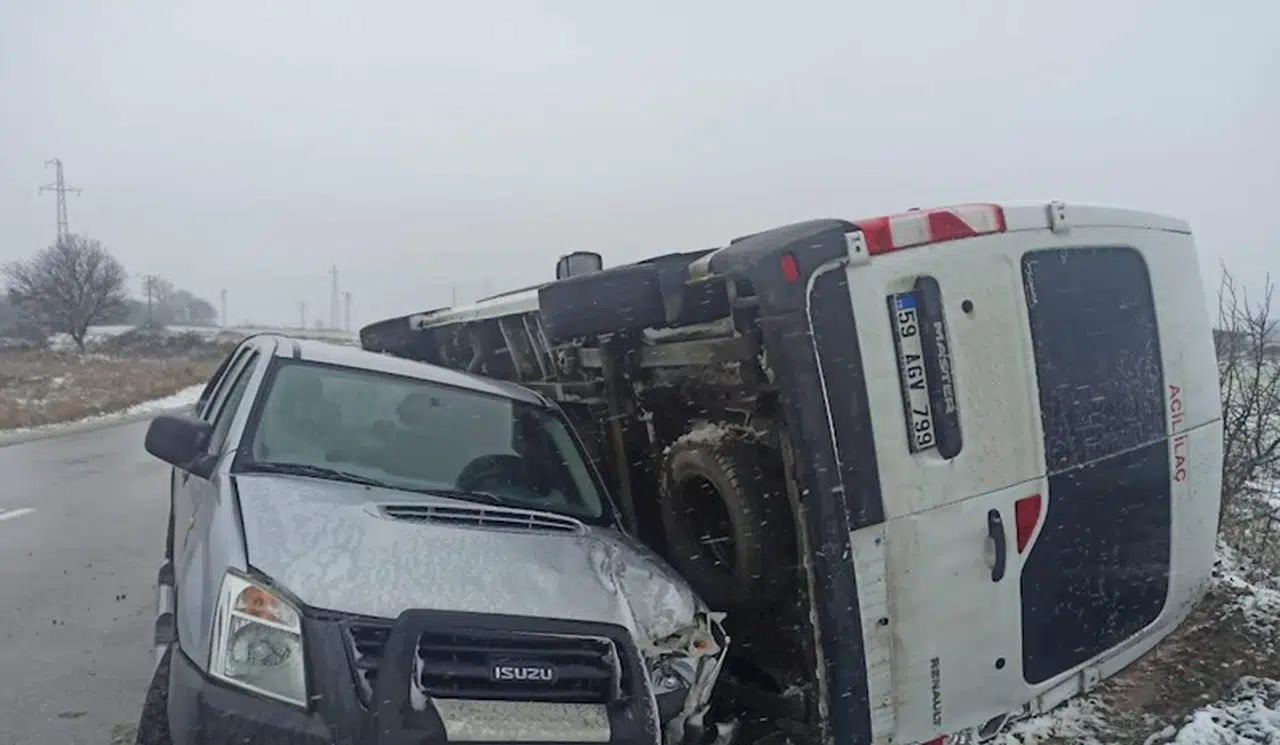 Kaza, sabah saatlerinde, Enez ilçesi Keşan-Enez kara yolundaki Çelebi köyü yakınlarında meydana geldi. Enez'den Keşan yönüne giden U.K. yönetimindeki 59 AGV 799 plakalı minibüs, kar yağışı ve buzlanma nedeniyle kayganlaşan yolda kontrolden çıkıp, yolun sağına devrildi. Bu sırada karşı yönden gelen ve kazayı görüp yavaşlamak isteyen B.D. idaresindeki 22 FZ 929 plakalı kamyonet, kayıp minibüse çarptı. Kazada, minibüsün sürücüsü U.K. yaralandı. İhbarla olay yerine jandarma ve sağlık ekipleri sevk edildi. Yaralı minibüs sürücüsü, ambulansla kaldırıldığı Keşan Devlet Hastanesi’nde tedaviye alındı. Olaya karışan araçlar ise çekiciyle yoldan kaldırıldı.