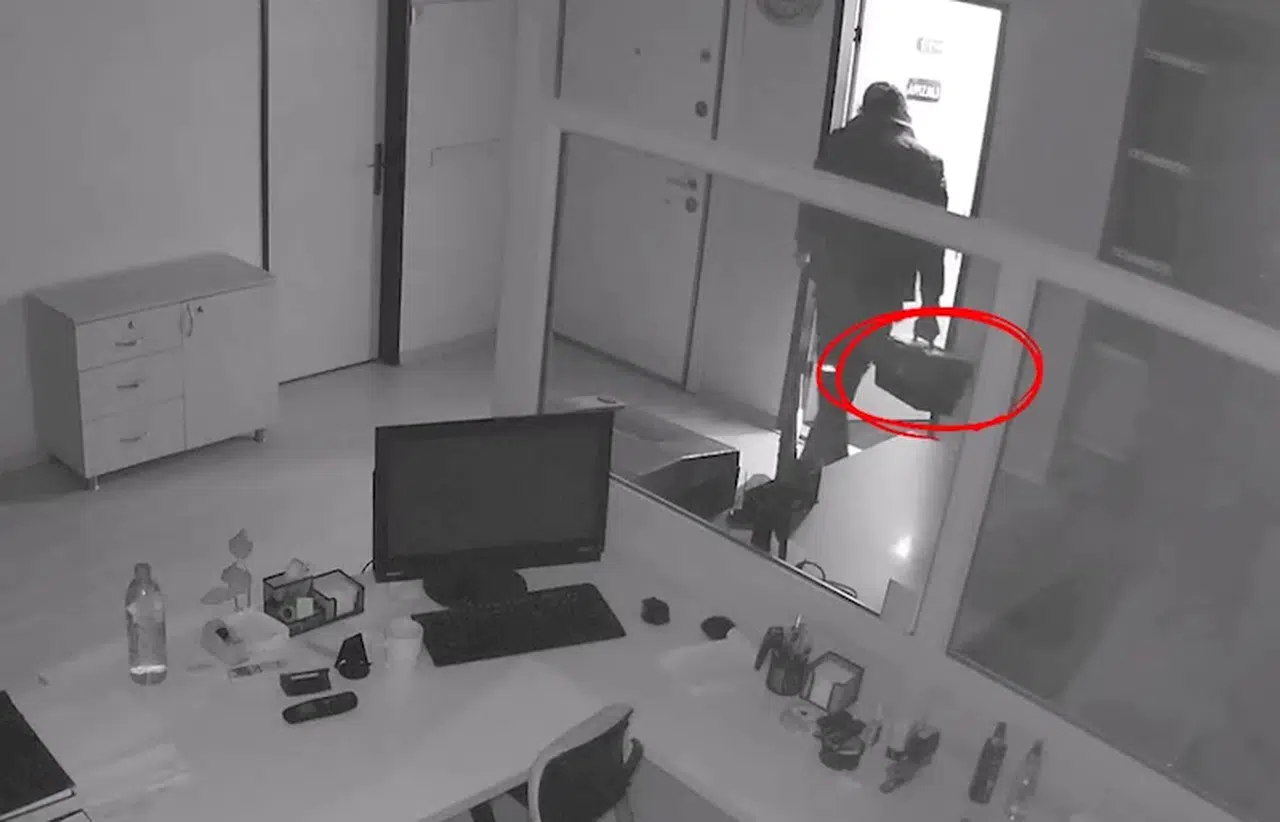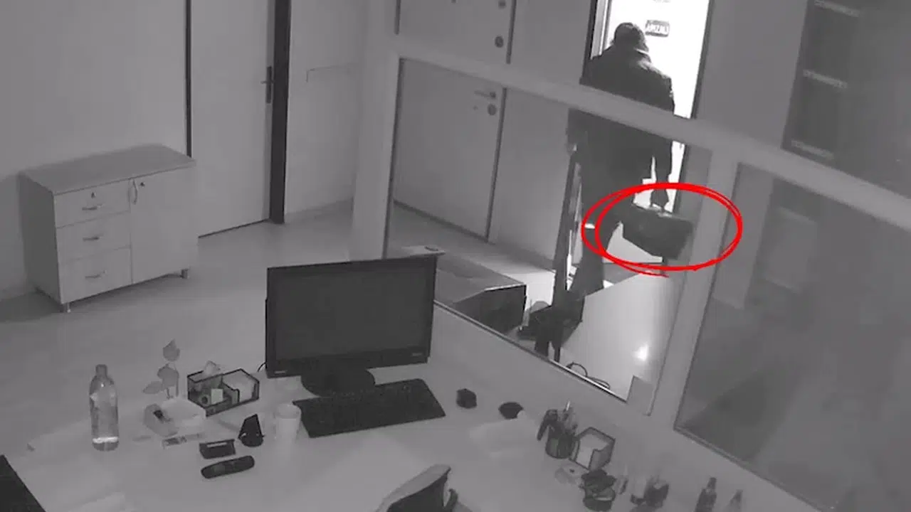 Öte yandan; hırsızlık güvenlik kamerasına yansıdı. Görüntülerde, şüphelinin ofise girmesi, ardından önce çelik kasayı daha sonra da kasayı açmak için alet kutusunu alması yer alıyor. (DHA)