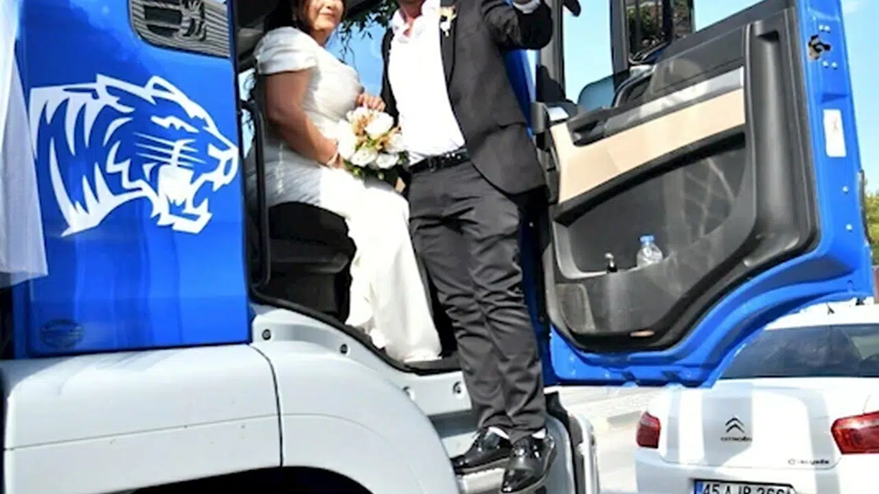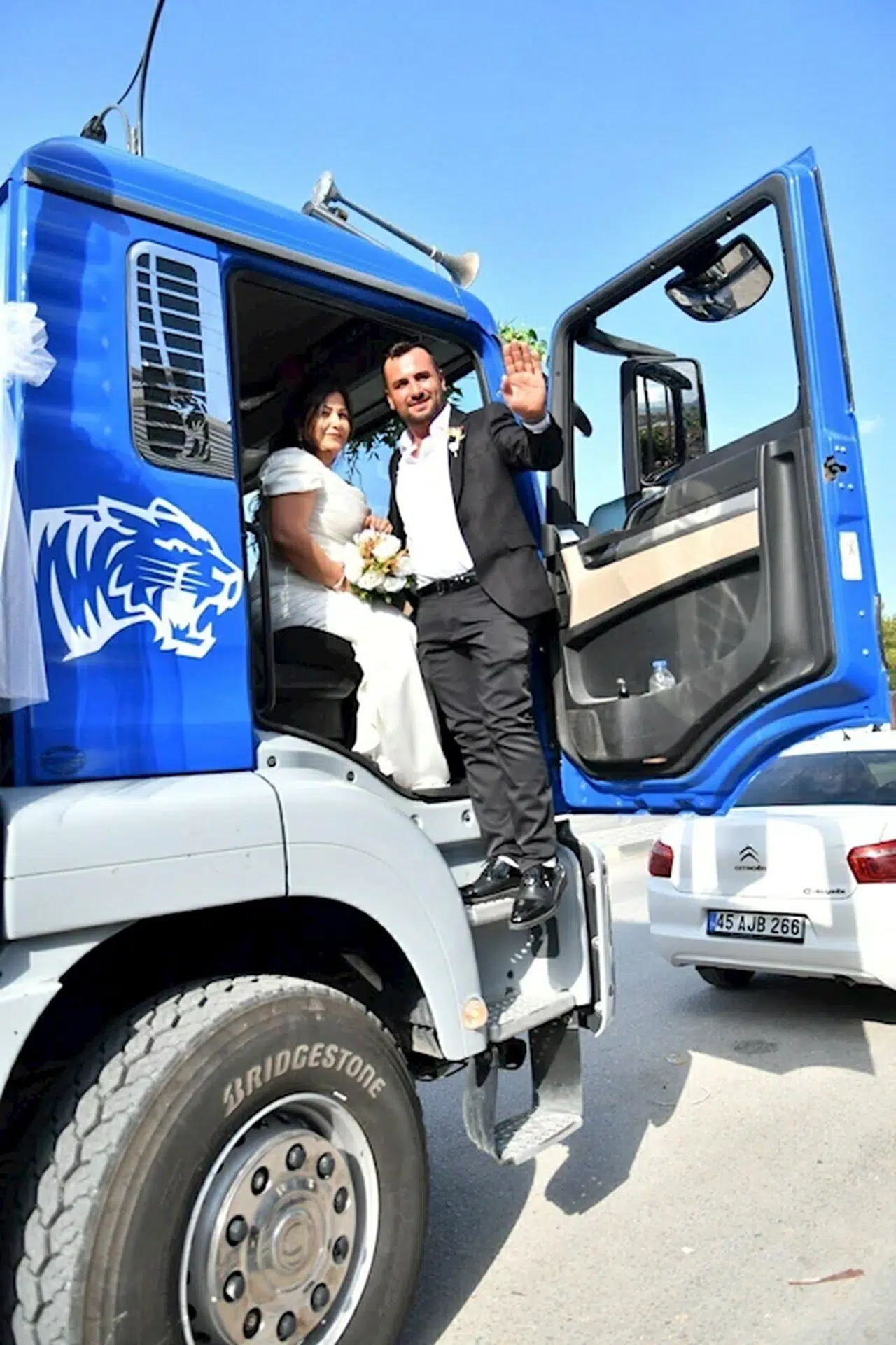 Manisa'nın Yunusemre ilçesinde 15 yıldır vinç operatörü olarak çalışan Doğan Çoban, çalıştığı vinci gelin arabası yaparak, eşi Funda Akar'a sürpriz yaptı. Kayapınar Mahallesi'nde oturan Funda Akar’ın evine gelin arabası gibi süslediği vinçle gelen damat Çoban, herkesi şaşırttı. Funda Akar'ı elinden tutarak vince bindiren Çoban, ardından kendilerine eşlik eden araçlar ile konvoy yaparak, nikahın yapılacağı Yunus Emre Millet Çarşısı'na geldi. Nikah memuru Yunus Kafalı tarafından nikahları kıyılan genç çift, ömür boyu mutluluğa imza attı.