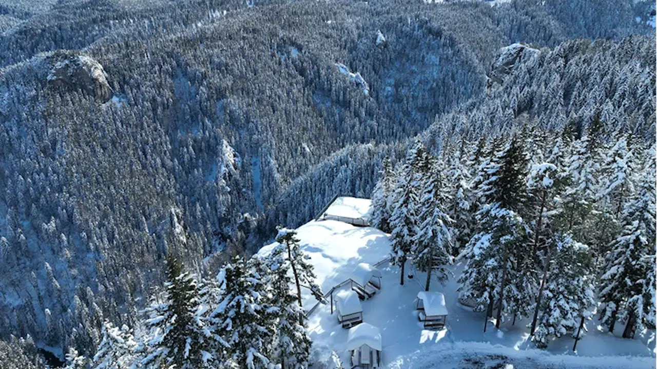 Büyükşehir Belediyesinden yapılan yazılı açıklamada, kentin gözde turizm merkezi Çambaşı Yaylası'ndaki Ablak Taşı'nın manzarasının, kış aylarında da ziyaretçilerini kendine hayran bıraktığı belirtildi.