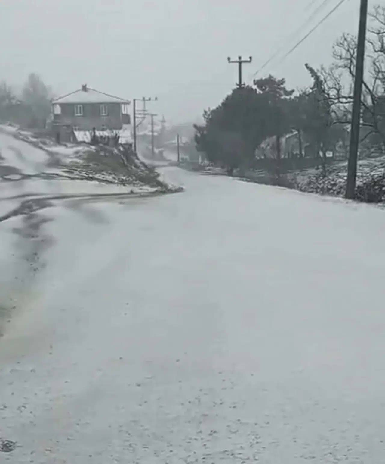 Nazif Cemhan ŞEN / ÇANAKKALE, (DHA)-ÇANAKKALE'nin Biga ilçesinin yüksek kesimlerinde kar yağışı etkili olmaya başladı. Camialan köyünde kar kalınlığı yer yer 5 santimetreye ulaştı.