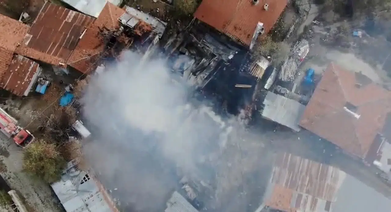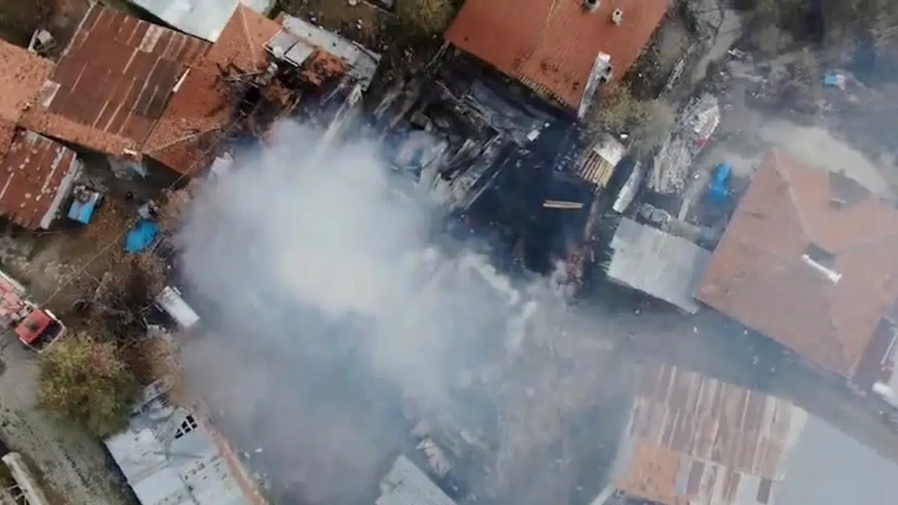 Yangında Recep Ç.’ye ait ev, ahır ve samanlık küle dönerken, 2 evde de maddi hasar meydana geldi. (DHA)