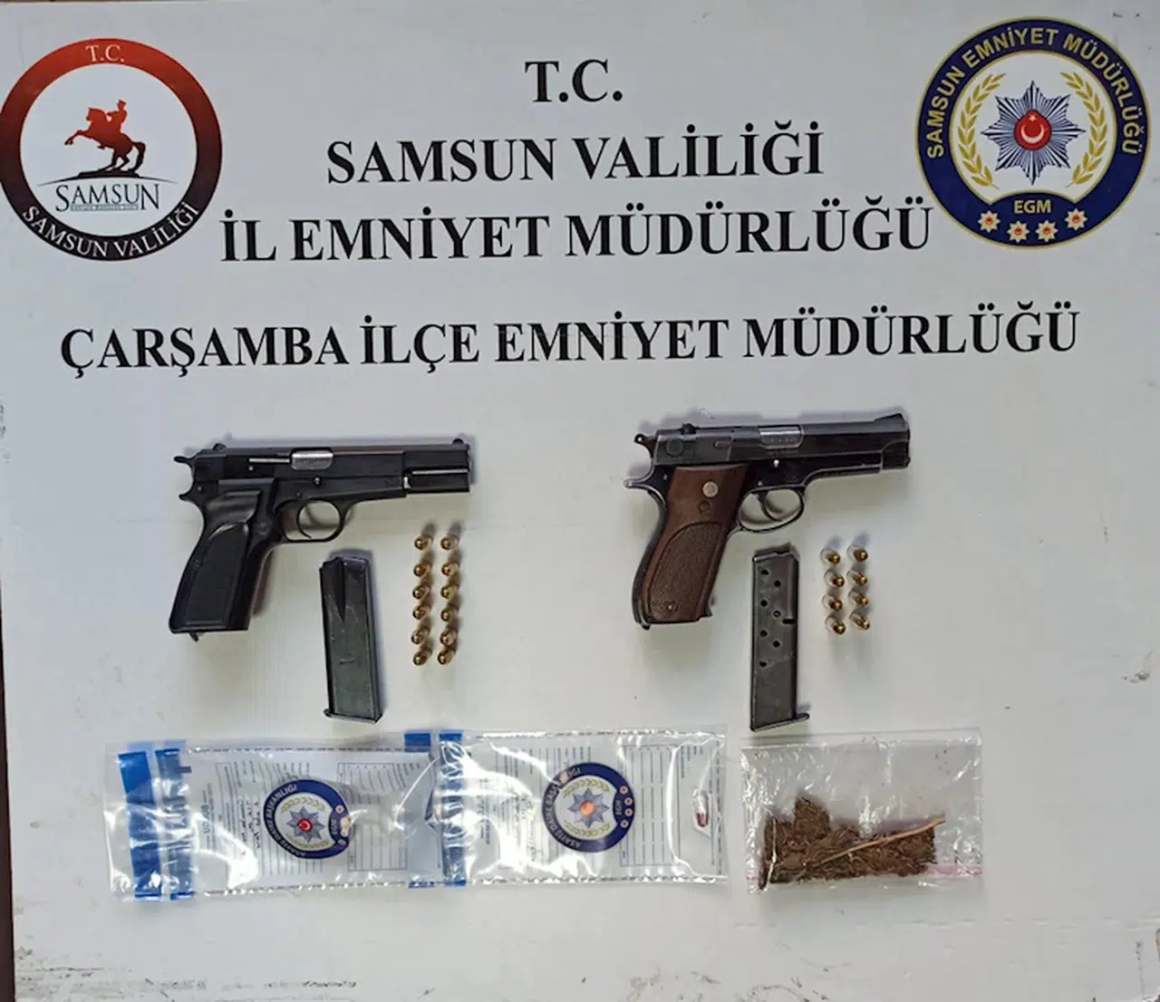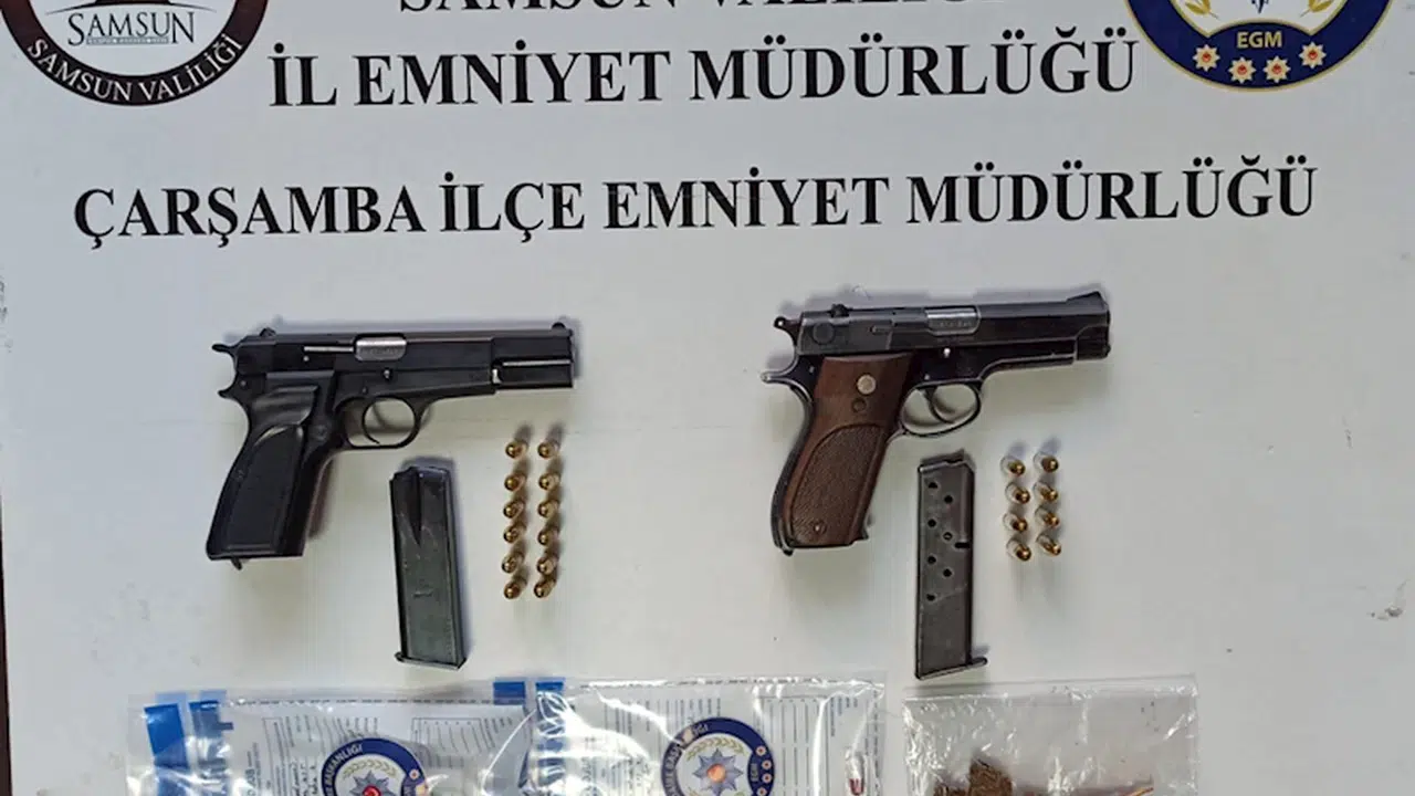 Çarşamba'da araçlarda ruhsatsız tabanca ve uyuşturucu bulundu