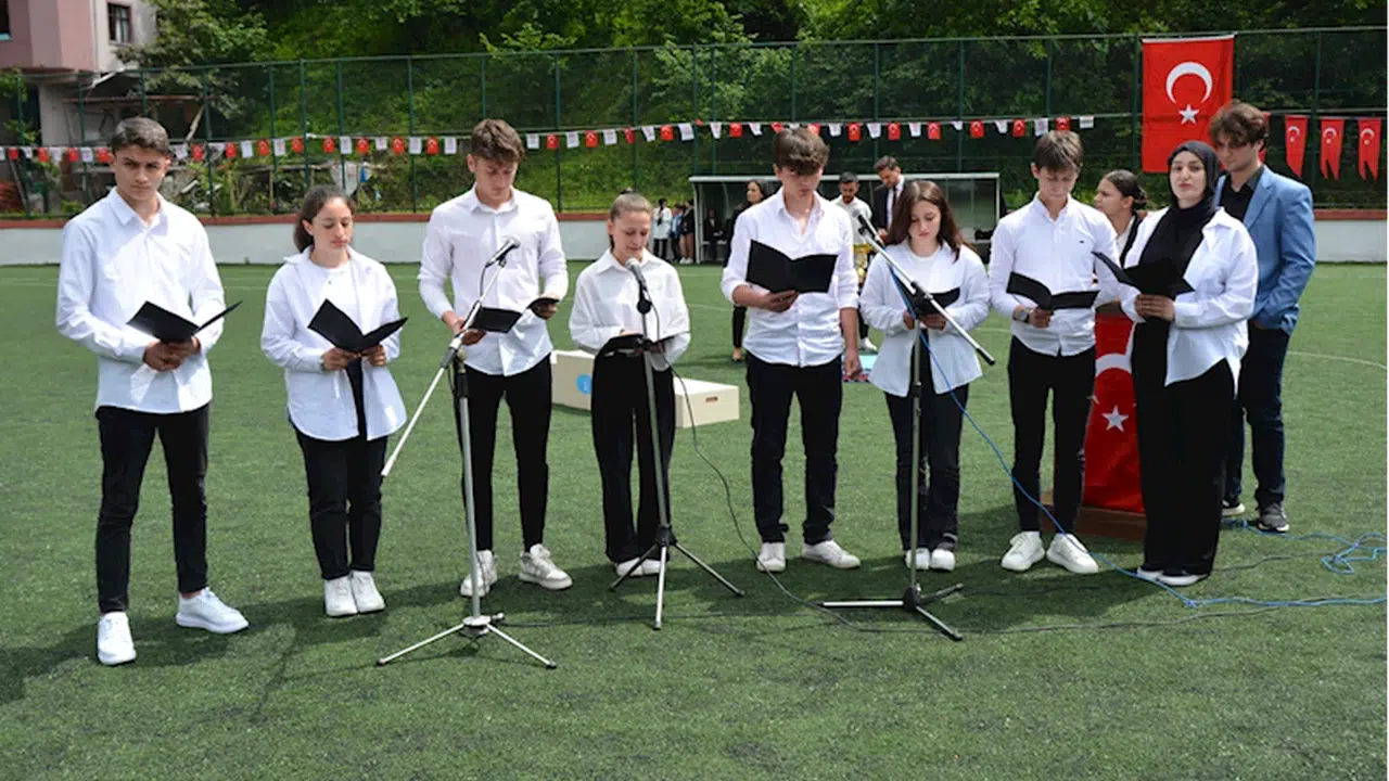 Saygı duruşunda bulunulması ve İstiklal Marşı'nın okunmasıyla başlayan törende, Çaykara Anadolu Lisesi öğrencileri gösteriler sundu.