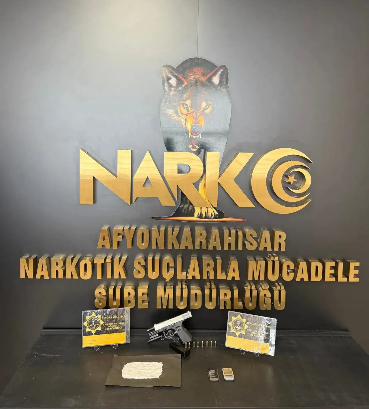AFYONKARAHİSAR'da polisin, çekici üzerindeki otomobilde tabanca ve uyuşturucuyla yakaladığı Y.T. tutuklandı.