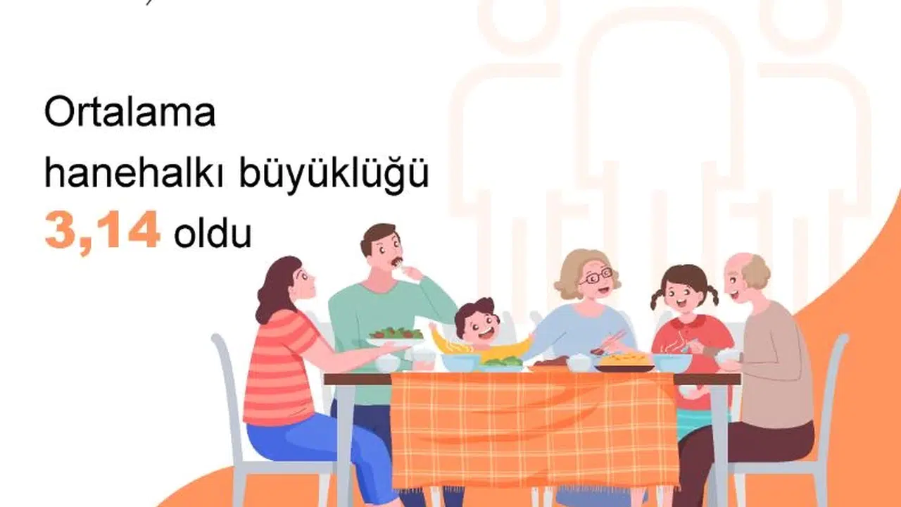 Türkiye İstatistik Kurumu (TÜİK), 15-21 Aile Haftası'na özel olarak 'İstatistiklerle Aile, 2023' bültenini yayımladı. Buna göre; Türkiye'de ortalama hanehalkı büyüklüğü yıllar içerisinde azalma eğilimi gösterdi. 2008 yılında 4 kişi olan aile büyüklüğü, 2023'te 3,14 kişiye düştü. Ortalama aile büyüklüğü en yüksek il 4,86 kişi ile Şırnak olurken; 4,67 kişi ile Şanlıurfa ve 4,61 kişi ile Batman ortalama aile büyüklüğünün yüksek olduğu diğer iller olarak gerçekleşti. Ortalama aile büyüklüğünün en düşük olduğu iller ise 2,54 kişi ile Çanakkale, 2,60 kişi ile Giresun ve 2,61 kişi ile Balıkesir oldu.