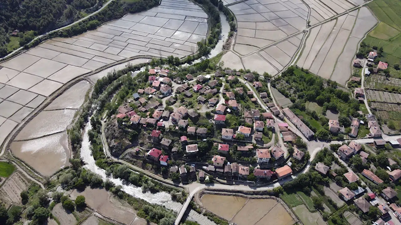 Çeltik ekim döneminde üç tarafı suyla kaplanan köy, eski ahşap evleri ve suyun ortasında yarımadaya dönüşen görüntüsüyle dikkati çekiyor.