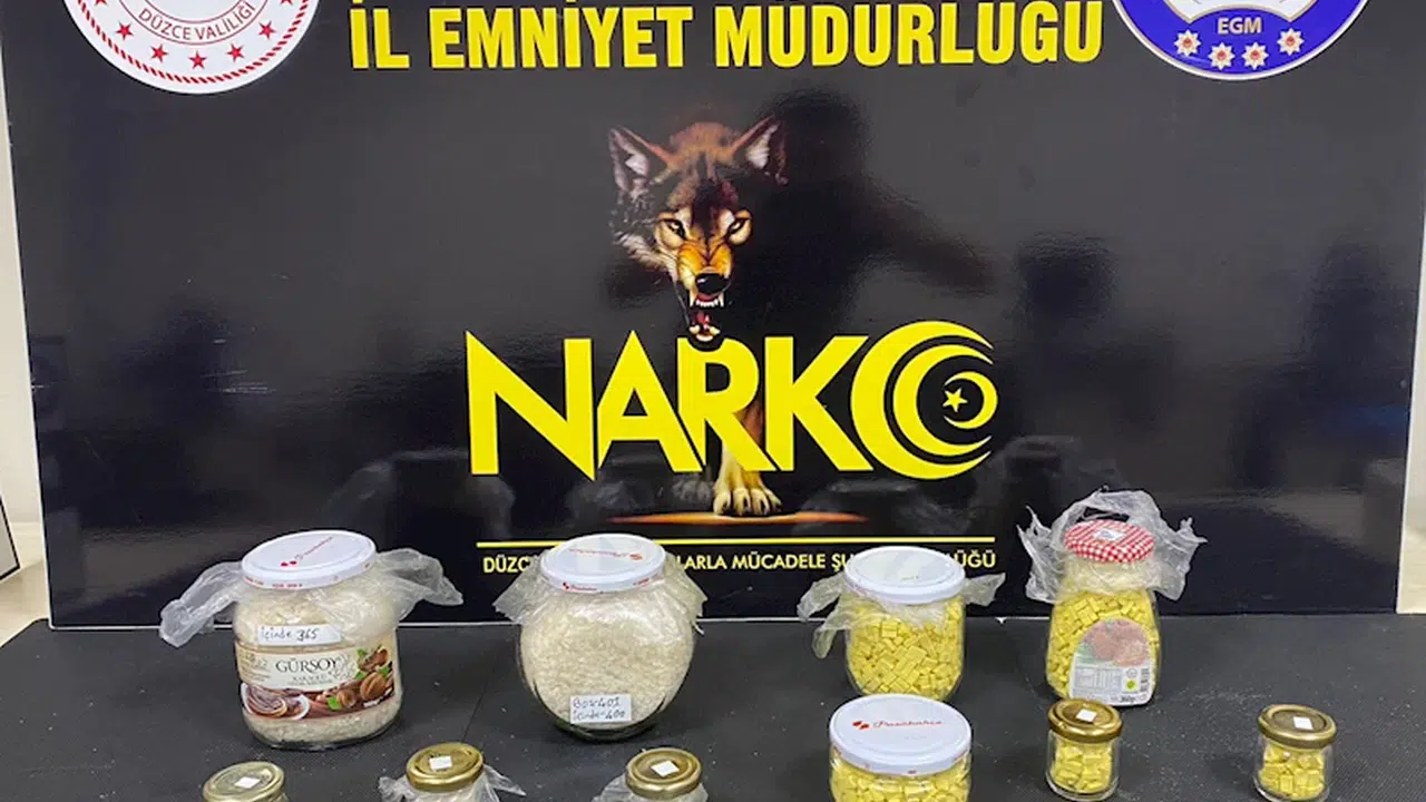 Düzce Cumhuriyet Başsavcılığı'nın yürüttüğü soruşturma kapsamında İl Emniyet Müdürlüğü Narkotik Suçlarla Mücadele Şube Müdürlüğü ekipleri tarafından bir süredir teknik ve fiziki takibi yapılan Tarık Yüksel'e ait çerez satışı yapılan iş yerine operasyon düzenledi. Operasyonda 4 parça halinde 800 gram metamfetamin, 2 bin 628 ecstasy hap, 2 parça halinde 3 gram bonzai, hassas terazi ele geçirildi. Gözaltına alınan iş yeri sahibi Yüksel, uyuşturucu madde ticareti yapmak’ suçlamasıyla tutuklandı. (DHA)