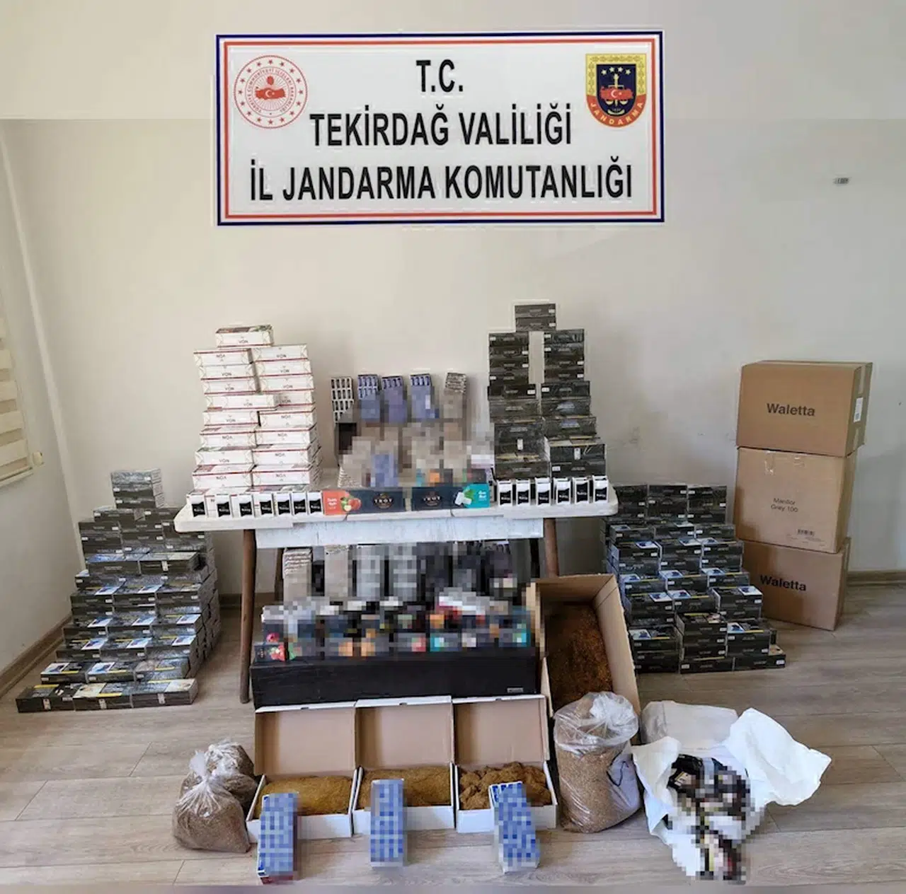 İl ve Çerkezköy İlçe Jandarma Komutanlığı ekiplerinin yaptığı çalışmada ilçenin Fevzipaşa Mahallesi'nde T.D.'ye ait işletmede kaçak tütün ürünleri bulunduğu belirlendi. İşletmede yapılan aramada, dolu ve boş toplam 120 bin makaron, 20 kilo kıyılmış tütün, 5 kilo nargile tütünü, 39 kesilmiş bandrol ile çok sayıda boş sigara kutusu ele geçirildi. İşletme sahibi T.D., hakkında işlem yapıldı. (DHA)