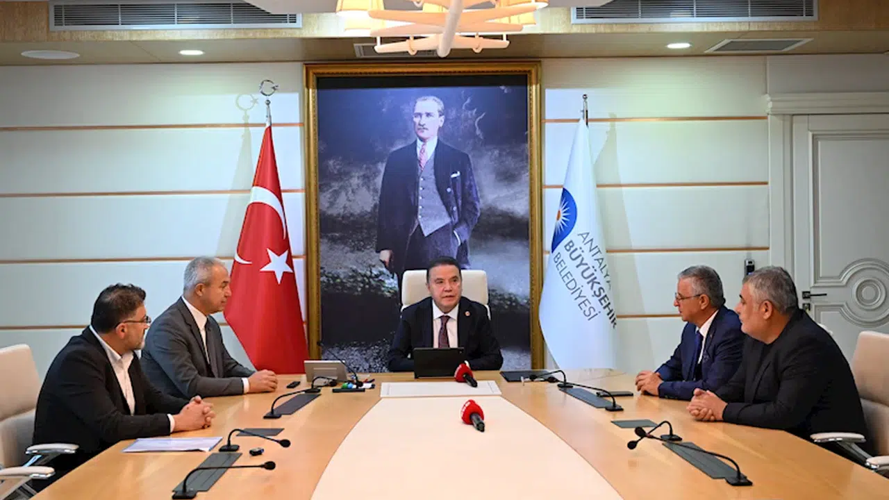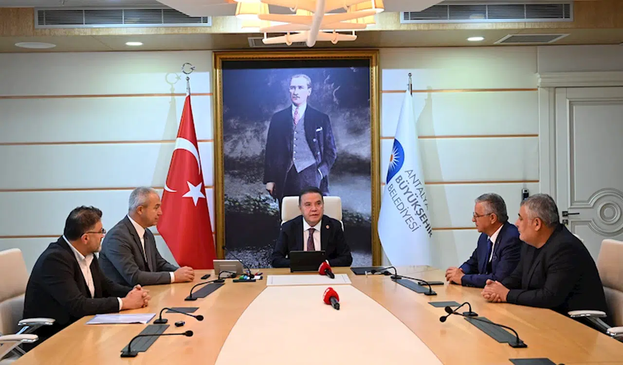 Başkan Muhittin Böcek, 4 ilçede uygulanacak proje için Alanya Belediye Başkanı Osman Tarık Özçelik, Serik Belediye Başkanı Kadir Kumbul, Aksu Belediye Başkanı İsa Yıldırım ve Kemer Belediye Başkanı Necati Topaloğlu ile bir protokol imzaladı.