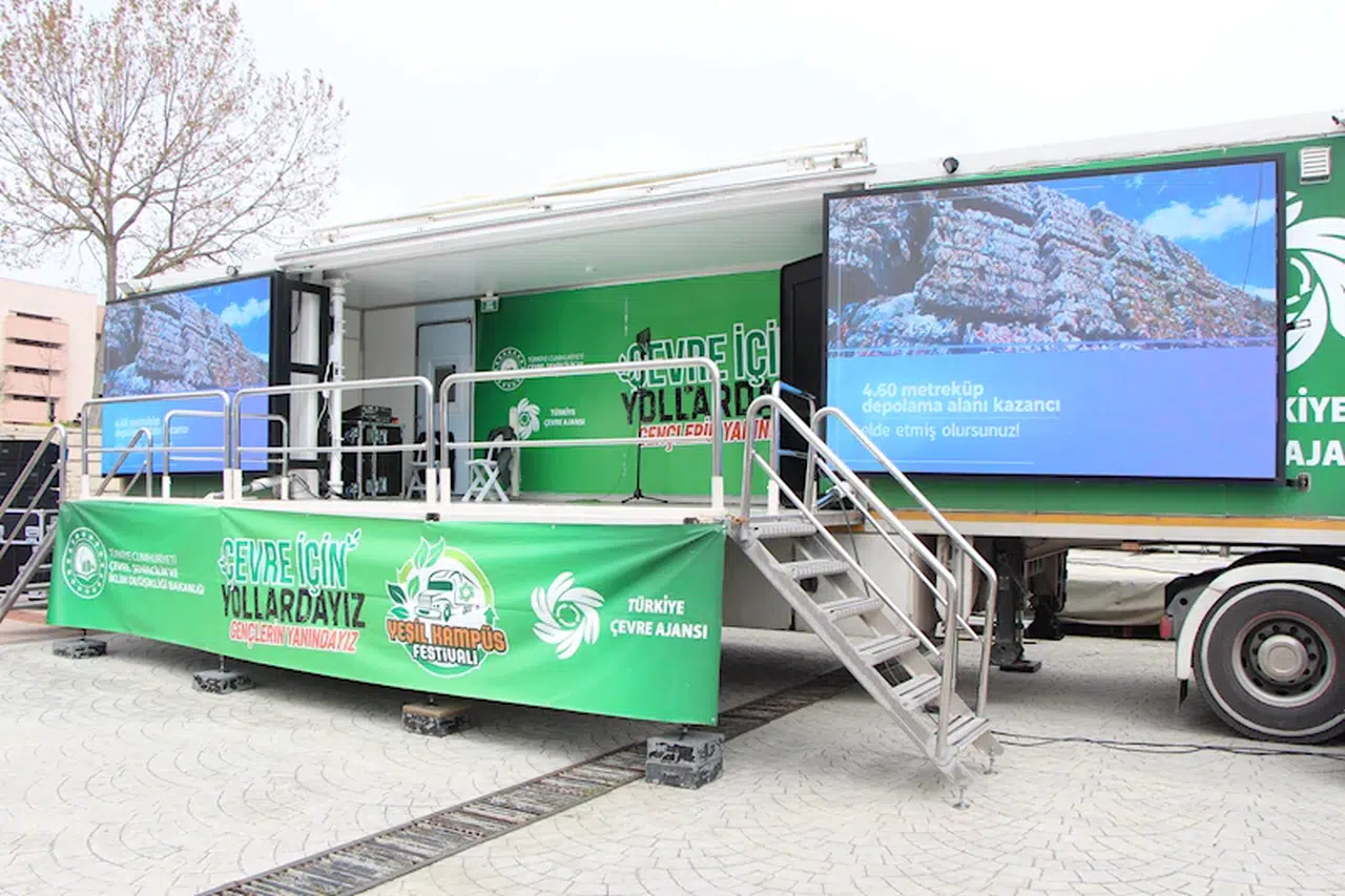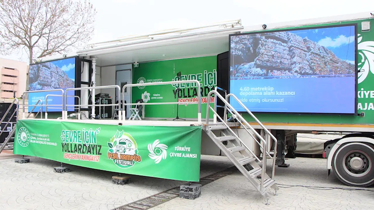 Berkay YILDIZ/SAMSUN, (DHA)- ÇEVRE, Şehircilik ve İklim Değişikliği Bakanlığı ile Türkiye Çevre Ajansı tarafından hayata geçirilen “Yeşil Kampüs Festivali” kapsamında, “Çevre İçin Yollardayız, Gençlerin Yanındayız” sloganıyla yola çıkan tanıtım TIR’ı, Samsun Ondokuz Mayıs Üniversitesi’nde (OMÜ) öğrencilerle buluştu.