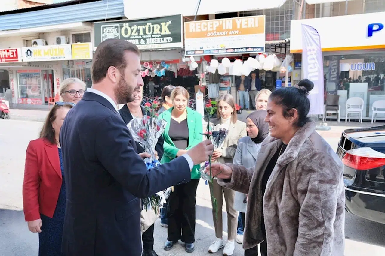 Sabah saatlerinden itibaren ilçe sokaklarında vatandaşlarla bir araya gelen Başkan Kadir Aydar, kadın esnafı da ziyaret etti. Başkan Aydar, gün boyunca cadde ve çarşı esnafını gezerek alışveriş yapan kadınlara da karanfil hediye etti. Vatandaşlarla sohbet eden Aydar, kadınların toplumun her alanında hak ettiği değeri görmesi gerektiğini vurguladı.