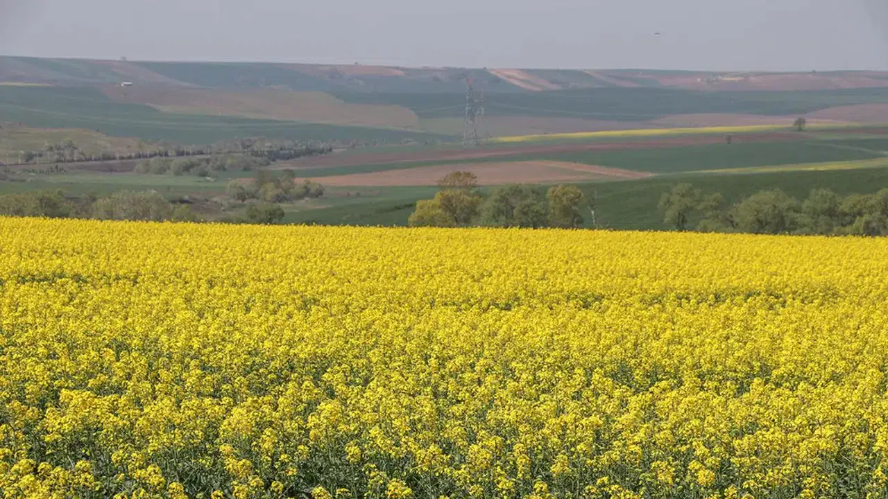 Tekirdağ'da ayçiçeğinden önce tarlaları sarıya boyayan kanola bitkisi rengiyle göz kamaştırıyor. Tarlalar, eşsiz manzarada fotoğraf çektirmek isteyenleri ağırlıyor.