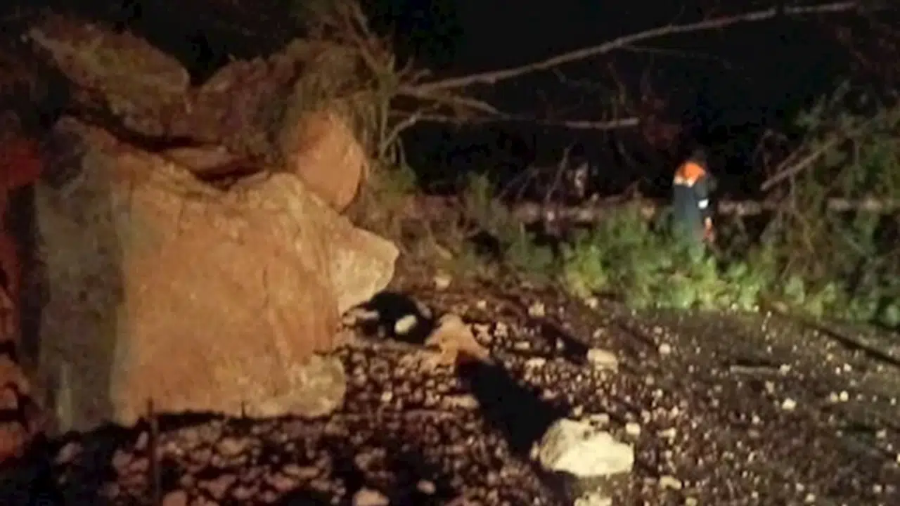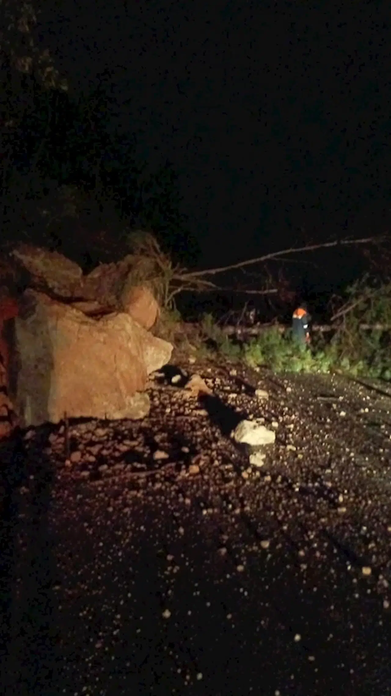 Bölgede yoğun kar ve yağmur yağışı sonrası toprağın yumuşaması nedeniyle Cide-Bartın karayolu Kalafat Mahallesi yakınında heyelan meydana geldi. Toprak, kaya ve ağaçların devrildiği yol, araç geçişine kapandı. Heyelan sonrası Cide 154'üncü Karayolları Şefliği ekipleri tarafından yolun açılması için çalışma başlatıldı. (DHA)