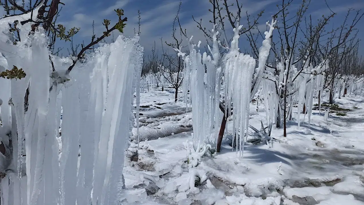 Türkiye'nin önemli elma üretimi olan ilçelerinden Yahyalı'da çiftçiler, hava sıcaklıklarının sıfırın altına düşmesiyle ağaçların üzerine su püskürtüp meyve üzerinde buz oluşturma yöntemi olan 'Spring' yöntemine başladı. Soğuk havanın etkisiyle suyun buza dönüştürülüp meyve gözünün ısısını artırmayı hedeflendiği yöntem, birçok çiftçi tarafından tercih edildi.