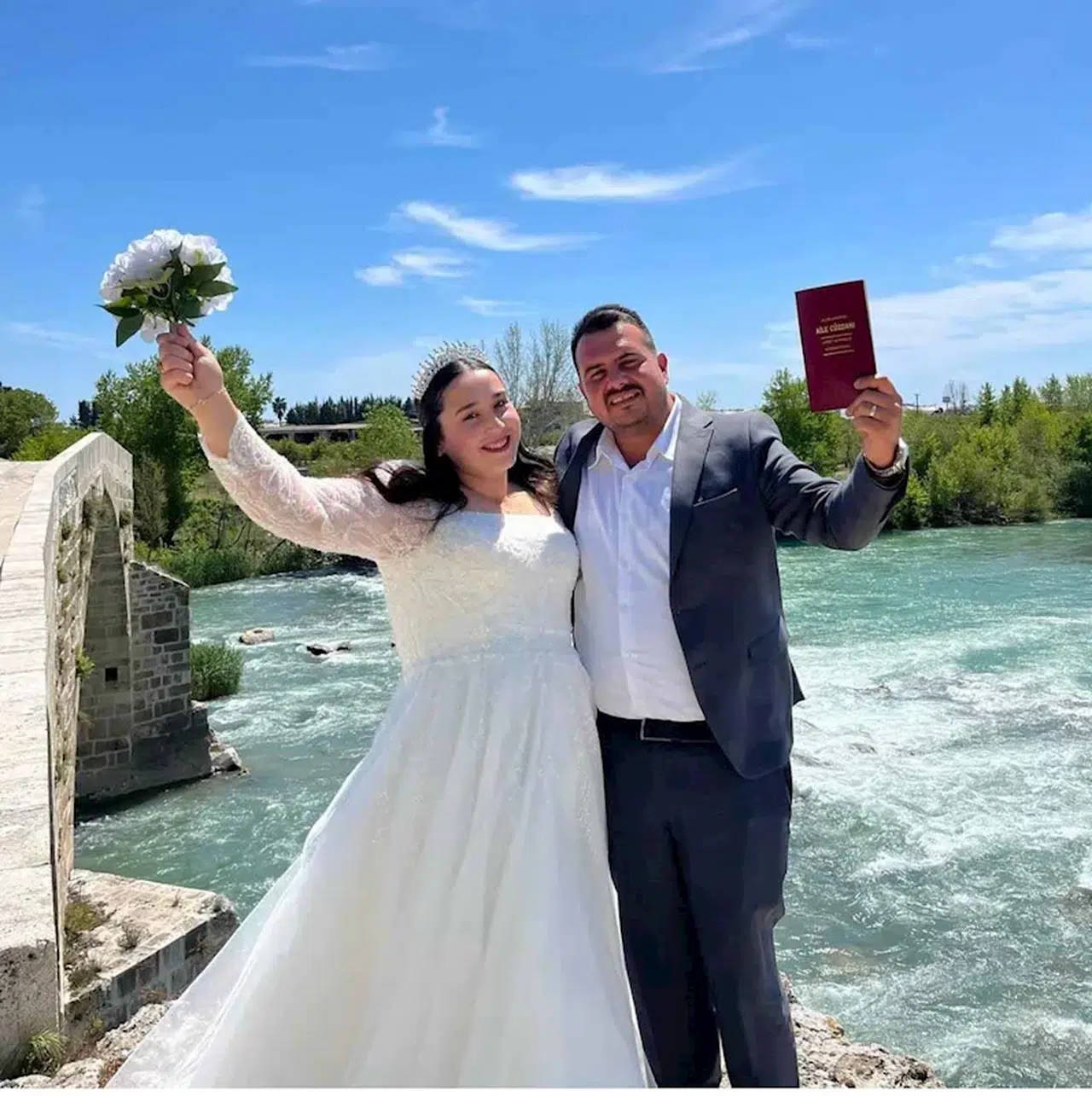 Alacami Mahallesi’nde oturan Görkem Şahin'in tarım arazisi, ilçede 2 gün önce yağan doludan zarar gördü. Dün yapılan düğünle dünyaevine giren Şahin, eski model klasik arabasına yöre şivesiyle 'Masülü tolu vurdu, beni gözlerin' yazısı astı. Gelin arabası, düğün konvoyunda yoğun ilgi gördü. Damatlık olarak bölgeye özgü şalvar giyen Görkem ve Hafize Şahin çiftinin gelin arabasındaki yazı, görenleri gülümsetti. (DHA)