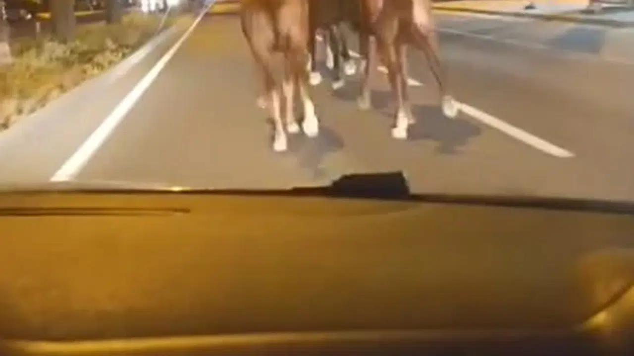 Okan ÇALIŞKAN/MERSİN, (DHA)- MERSİN'de bir çiftlikten kaçan yarış atları, D-400 kara yolunda görüntülendi.