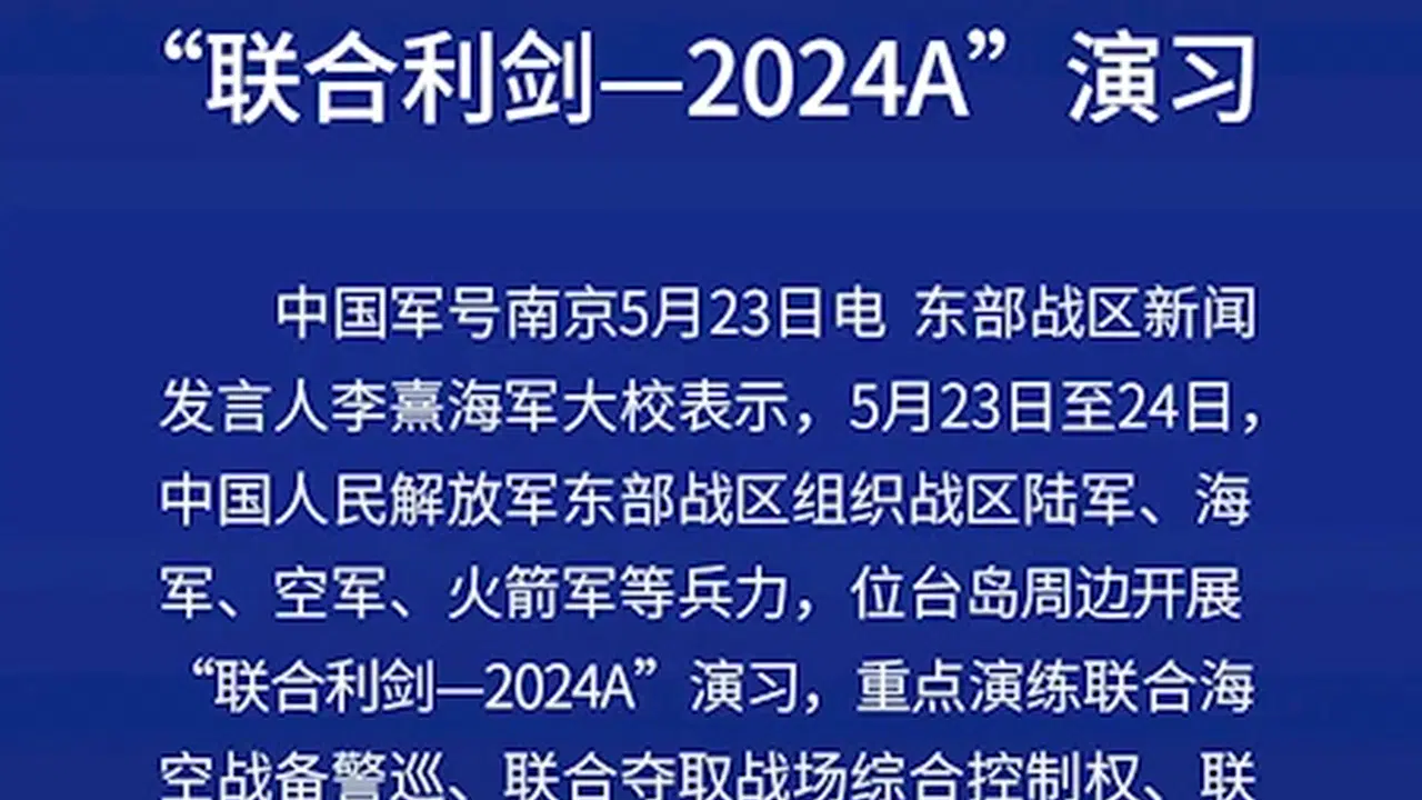 Çin Savunma Bakanlığı’ndan yapılan açıklamada, “Çin Halk Kurtuluş Ordusu, 23-24 Mayıs tarihleri arasında Tayvan adası çevresinde askeri tatbikat gerçekleştirmek üzere ordu, donanma, hava kuvvetleri, roket kuvvetleri ve diğer kuvvetlerini organize etti. Tatbikat, ortak deniz ve hava muharebe hazırlık devriyeleri, kapsamlı savaş alanı kontrolünün ele geçirilmesi ve kilit hedeflere hassas saldırı gibi konulara odaklandı. Gemiler ve uçaklar Tayvan adası yakınlarındaki muharebe devriyelerine katıldı. Bu aynı zamanda ‘bağımsızlık’ isteyen ‘Tayvan bağımsızlığı’ ayrılıkçı güçleri provokasyonlarına karşı ciddi bir uyarıdır” denildi.