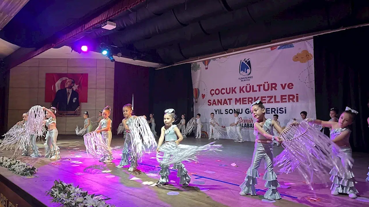 MANİSA, (DHA)-MANİSA'nın Yunusemre Belediyesi bünyesinde hizmet veren Çocuk Kültür ve Sanat Merkezleri'nde 2023-2024 Eğitim-Öğretim Yılı'nda eğitim gören 175 öğrenci yıl sonu gösterisi yaptı.