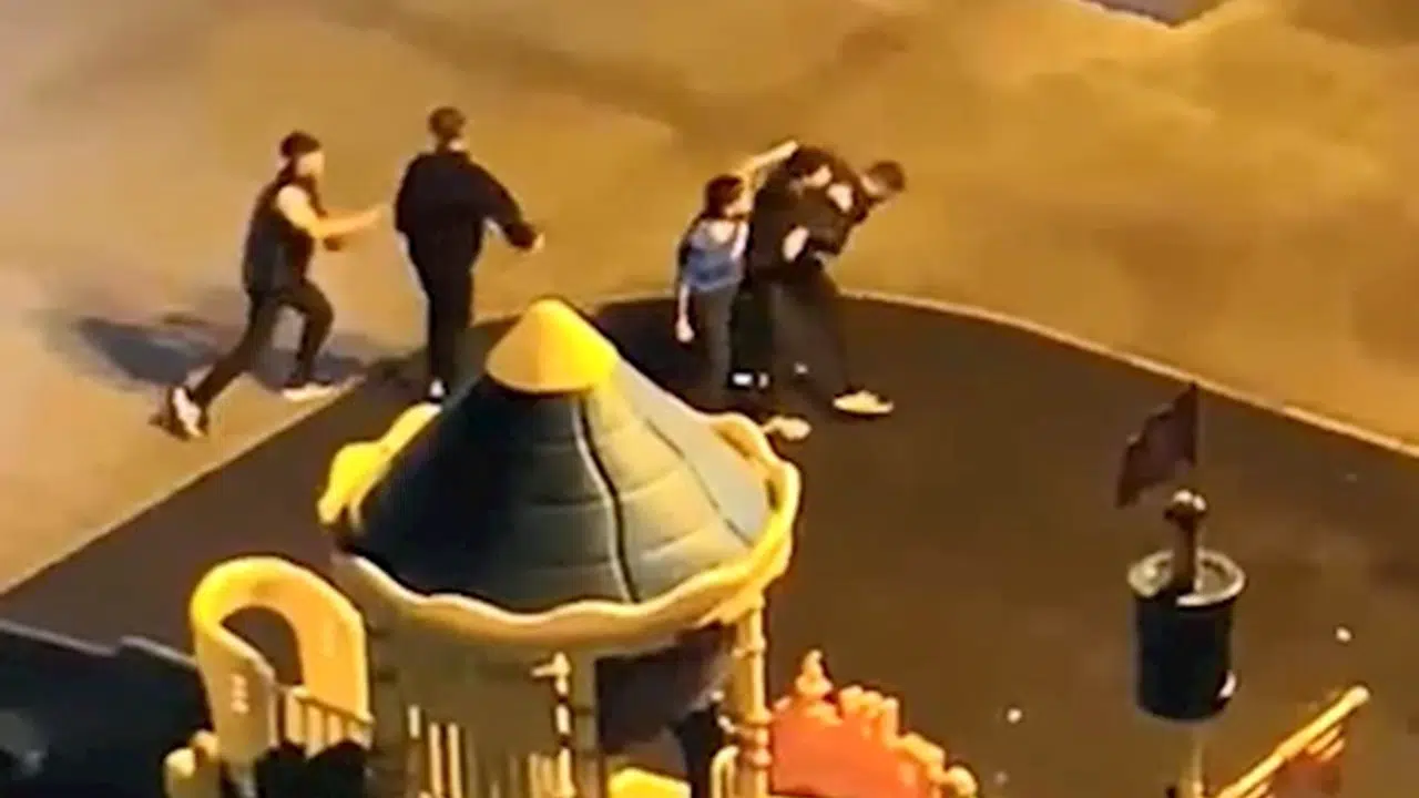 Mehmet YİRUN/ÇORLU,(Tekirdağ), (DHA)- TEKİRDAĞ'ın Çorlu ilçesindeki çocuk parkında iki grup arasında çıkan tekmeli ve yumruklu kavga, cep telefonu kamerasıyla görüntülendi.