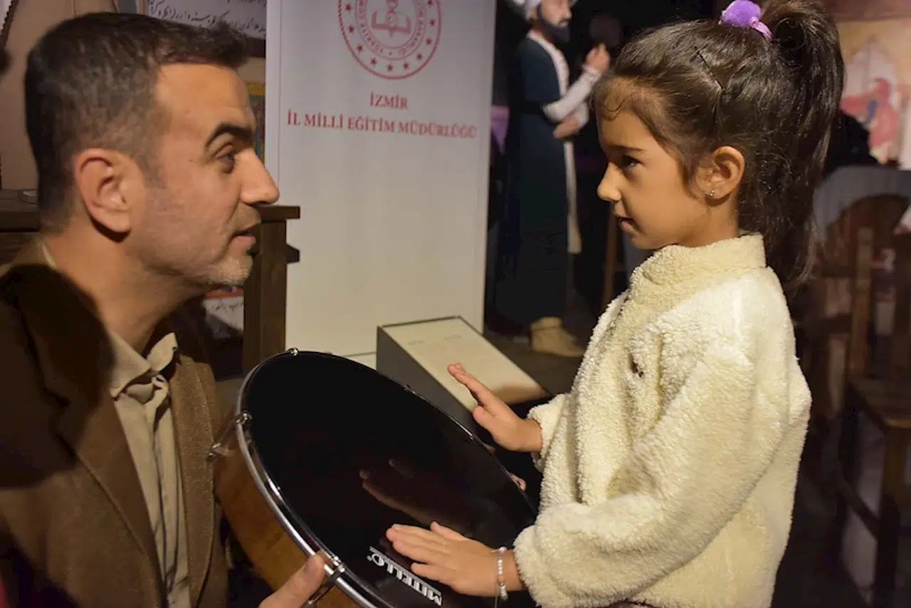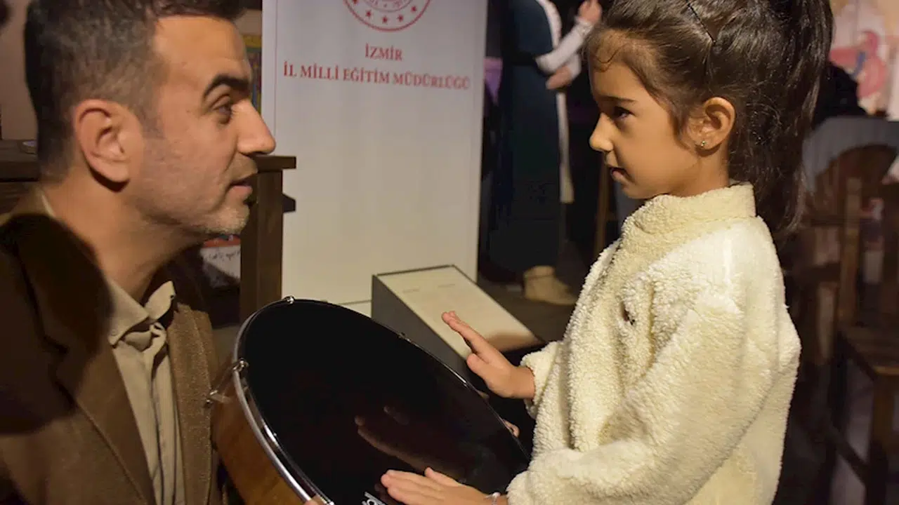 İzmir Cumhuriyet Eğitim Müzesi'ndeki ritim atölyesine katılan çocuklar, vurmalı çalgılarla uygulama yapma imkanı bulurken kil atölyesinde ise Sümerce ve Göktürkçe yazılar yazarak odaklanmasını arttırıyor. Etkinlikle çocuklar sanatla uğraşırken bir yandan da müzeler nasıl mekanlar öğrenme fırsatı buluyor.