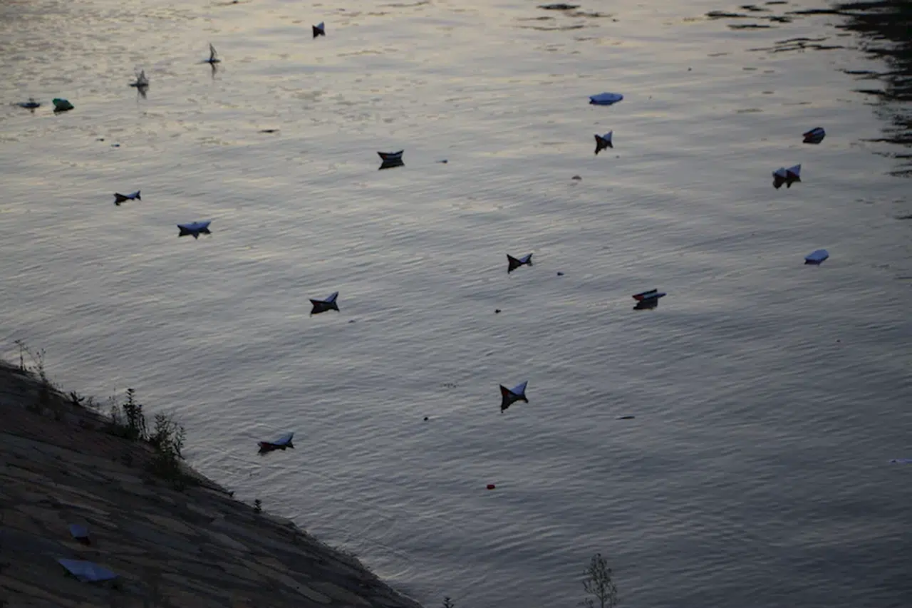 Konuşmaların ardından Yeşilırmak'a çocuklar tarafından kağıttan yapılmış 3 bin gemi bırakıldı. (DHA)