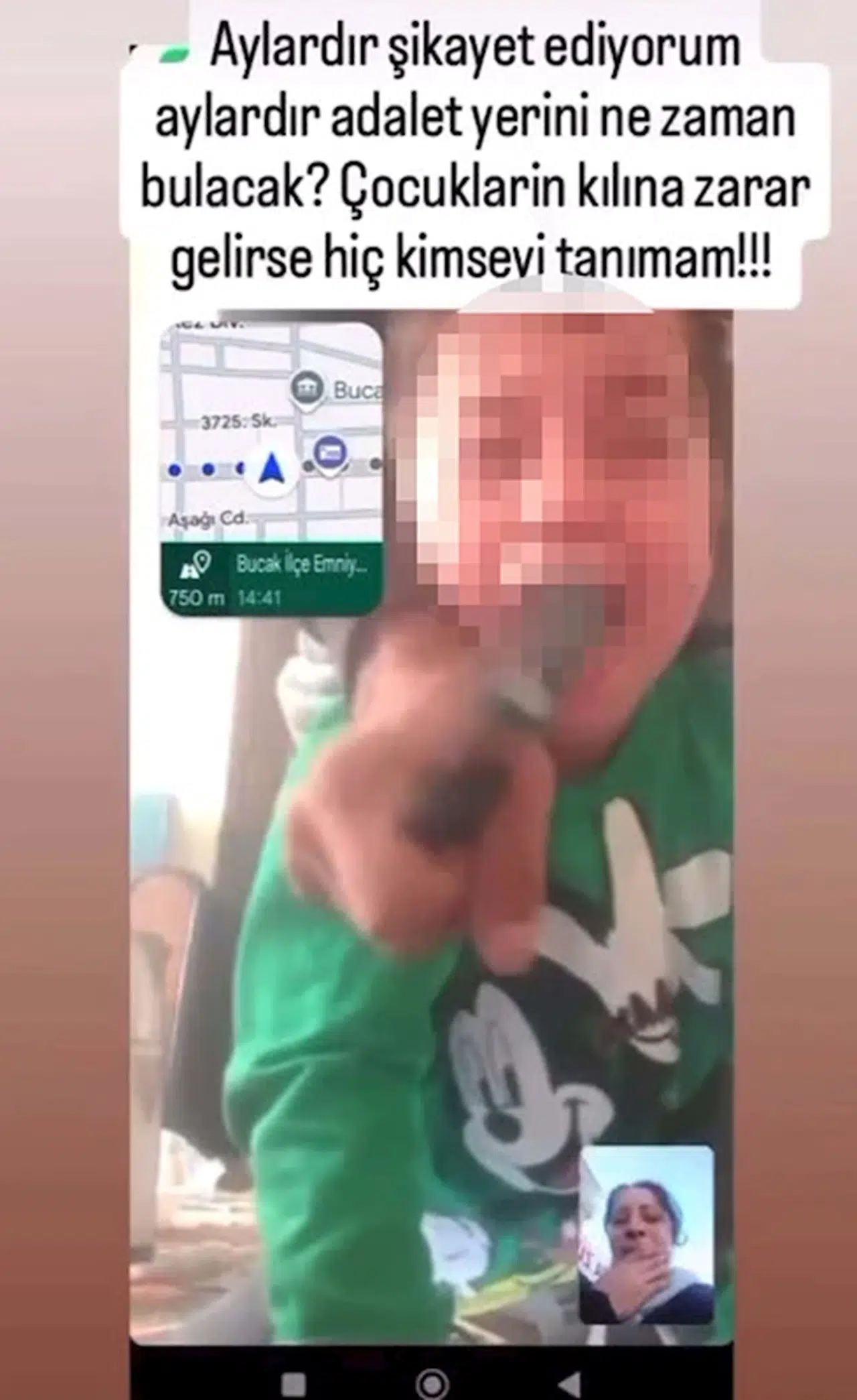 Konuyla ilgili açıklama yapan İzmir Valiliği, açıklamasında 'Bazı sosyal medya hesaplarında 18.11.2024 tarihinde (bugün) paylaşılan görüntülerde, Burdur'da bulunan boşanma aşamasındaki resmi nikahlı eşi F.A.'yı görüntülü arayarak çocuklarıyla tehdit eden baba Ş.A., ilimiz Karabağlar ilçesinde yakalanmış, çiftin iki erkek çocuğu devlet korumasına alınmıştır. Gözaltına alınan şüpheli Ş.A. ile ilgili adli işlemler devam etmektedir.' denildi.(DHA)