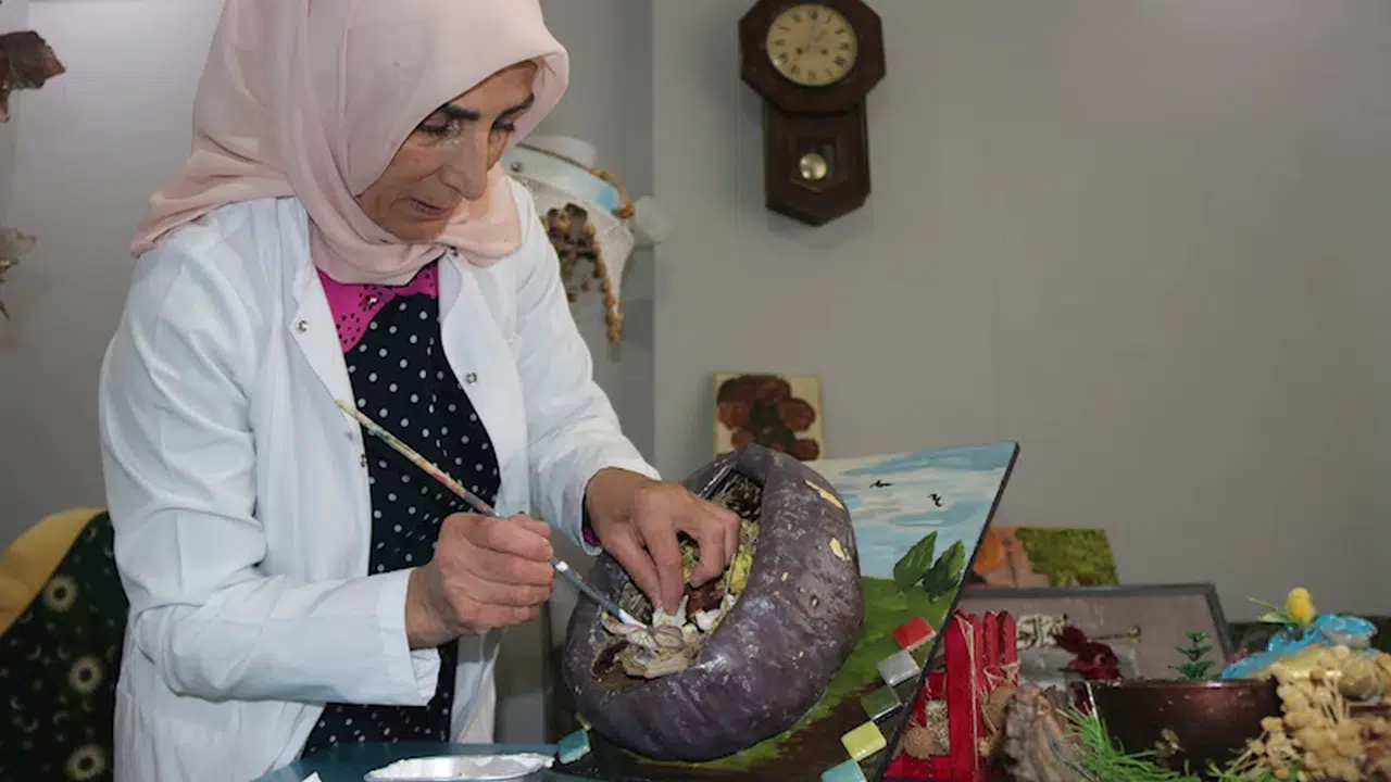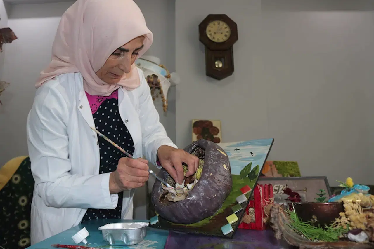 "Çocukluğumda bile bahçemizin etrafındaki çalıları kesip örgü şişi olarak kullanırdım. Babama ait boyaları alıp, kesilen odun parçalarını boyar süs eşyalarına dönüştürürdüm. Lisede de sanatı seçtim. Daha çok nakış dikiş, örgü, bebek yapımı, yemek yaptık. Evdeki eşyaları daha aktif olarak kullanmak üzere dönüştürmeye başladım. Mesela tencereden saat yaptım. Kütükleri bahçelerden bulup getirdim. Hepsinin içini temizleyip vernikledim ve içlerine çiçekler yerleştirdim. Bahçelerden mısır koçanlar toplayarak, onlarla bebekler yaptım. Lahanalar ve kabakları kuruttum, süs eşyaları yaptım. İnşaat atıkları, borular, parkeler, demirler bana malzeme oldu. Bugüne kadar binin üzerinde eser yaptım ve hiç birini satmadım, tanıdıklarıma hediye olarak veriyorum ." (DHA)