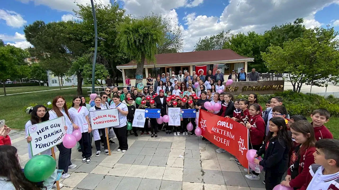 Çorlu İlçe Sağlık Müdürlüğü tarafından 'Sağlık İçin Hareket Et' etkinliği Cumhuriyet Parkı'nda düzenlendi. Etkinlikteki yürüyüşe Atakent İlkokulu ve Mektebi İlkokulu öğrencilerinin yanı sıra, yaklaşık 100’ün üzerinde vatandaş katıldı. Minik öğrenciler taşıdıkları pankartlar ve coşkulu yürüyüşleriyle sağlıklı yaşama dikkat çekti. Etkinlikte konuşan Çorlu Sağlıklı Hayat Merkezi Sorumlu Hekimi Dr. Melekşen Akyol, her yıl bu özel gün vesilesiyle toplumda farkındalık yaratmaya çalıştıklarını belirterek, "Her yıl 10 Mayıs tarihinde 'Sağlık için hareket et' kampanyası kapsamında halkımızda farkındalık oluşturmak için çeşitli etkinlikler düzenliyoruz. Bildiğiniz gibi, tüm dünyada kronik hastalıkların önlenmesi ve obeziteyle mücadele çok önemli. Bu nedenle tüm vatandaşlarımızı her gün en az 30 dakika yürüyüş yapmaya davet ediyoruz. Sağlığımız için hareket edelim. Özellikle hipertansiyon gibi yaygın sorunlara karşı da hareketsizlikle mücadele etmeliyiz. Ayrıca Sağlıklı Hayat Merkezlerimize herkesi bekliyoruz; diyetisyen, psikolog, fizyoterapist kadromuzla ve kanser taramalarımızla halkımızın yanındayız" dedi.