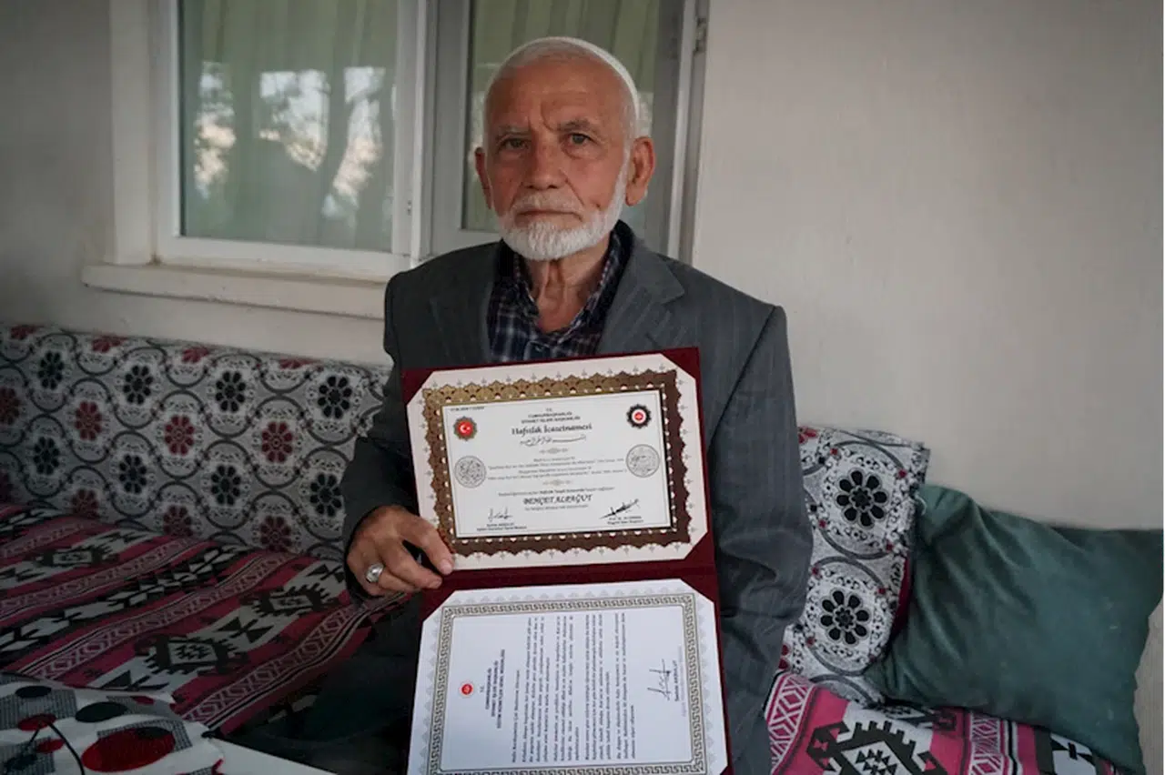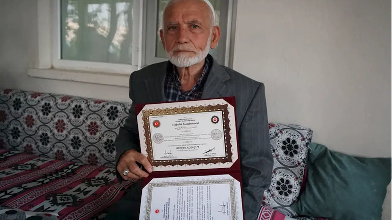 ÇORUM (AA) - Çorum'un Osmancık ilçesinde 76 yaşındaki Behçet Alpagut, hafızlık belgesi aldı.