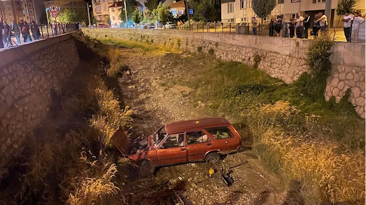 Kazada yaralanan sürücü ve otomobilde bulunan Ali A. ve Tuğba S, İskilip Belediyesi itfaiye ekiplerince akarsu yatağından çıkarıldı.