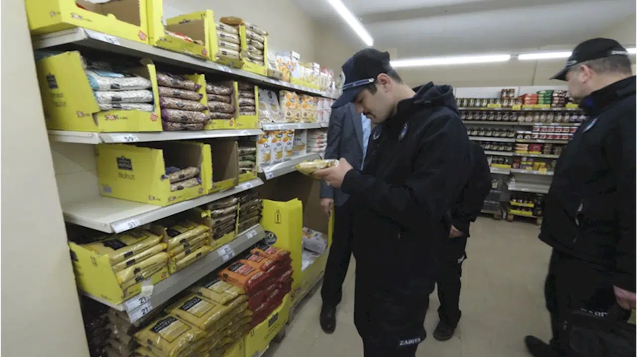 İki arkadaş, zabıta ekipleriyle birlikte Alparslan Türkeş Caddesi'ndeki zincir marketlerin şubelerine giderek denetim yaptı.