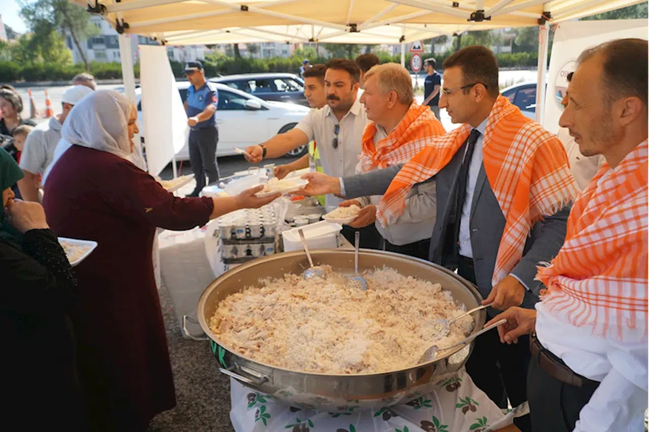 Çorum'da festivalde yapılan pilav kara yolundan geçen sürücülere ikram edildi
