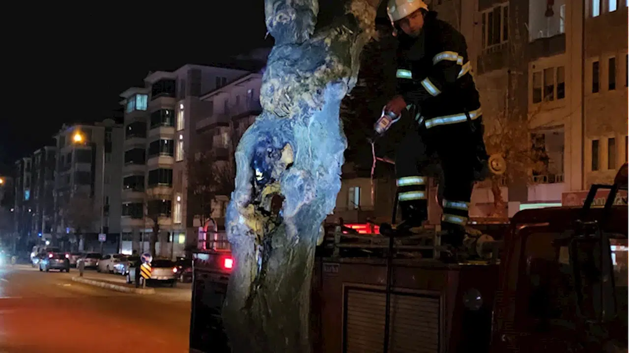 Çorum'da gövdesi yanmaya başlayan ağaç söndürüldü