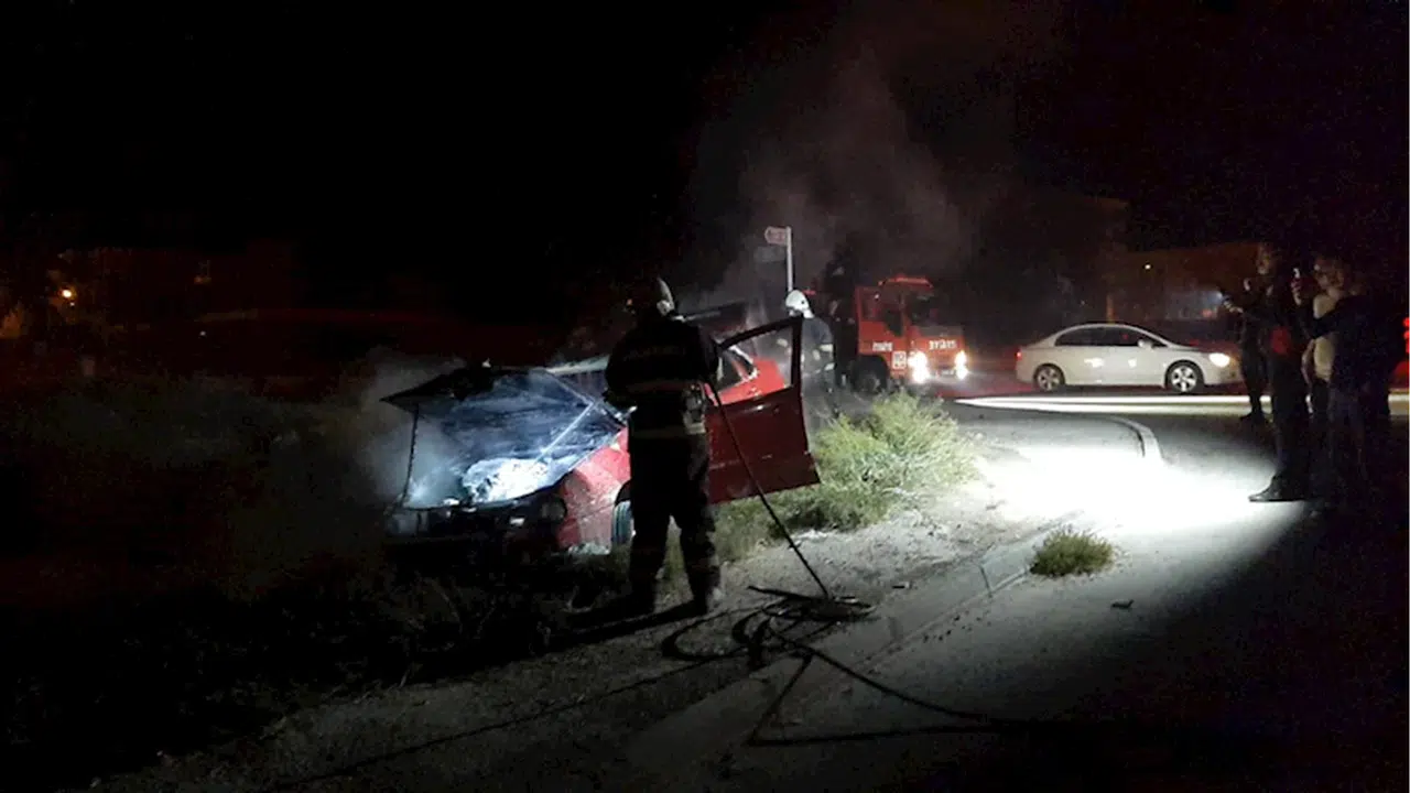 Olay yerine ulaşan sağlık ekipleri, alkollü olduğu öğrenilen ve aracından inmek istemeyen sürücüyü ikna etmeye çalıştıkları esnada otomobil alev aldı.