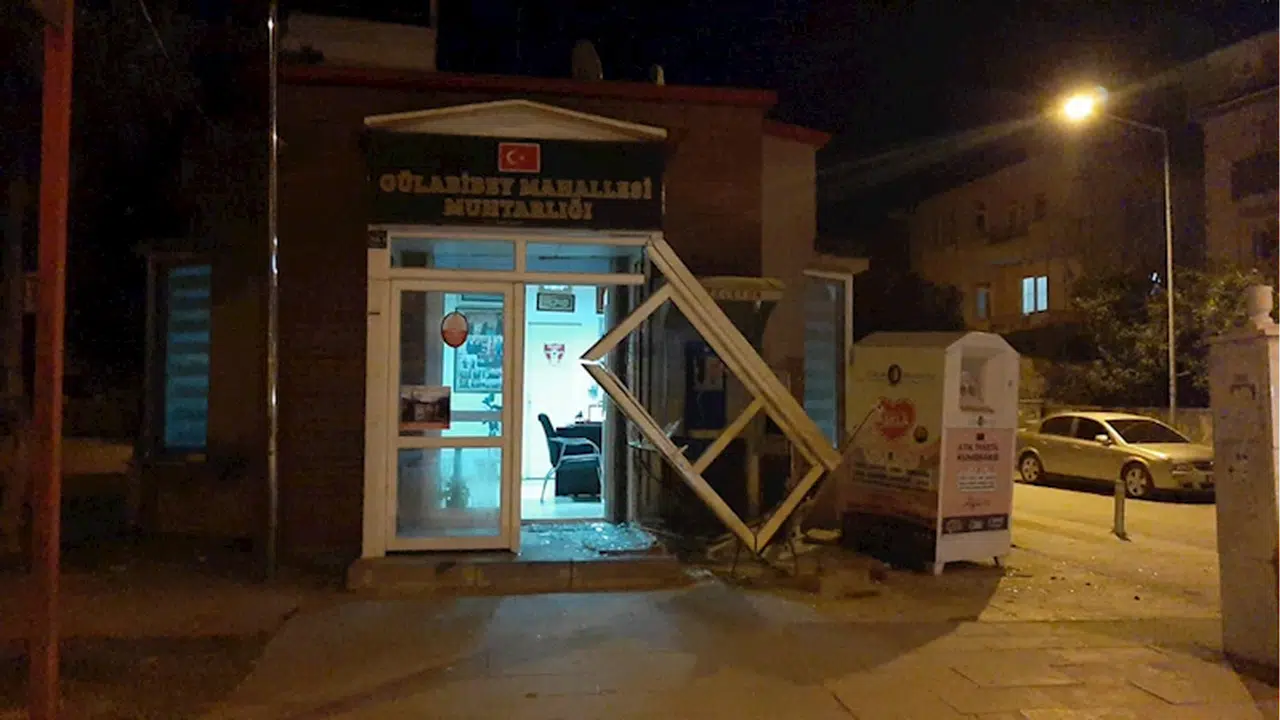 Sürücüsü tespit edilemeyen 19 EK 679 plakalı otomobil, Gülabibey Mahallesi muhtarlık binasına çarparak olay yerinden kaçtı.