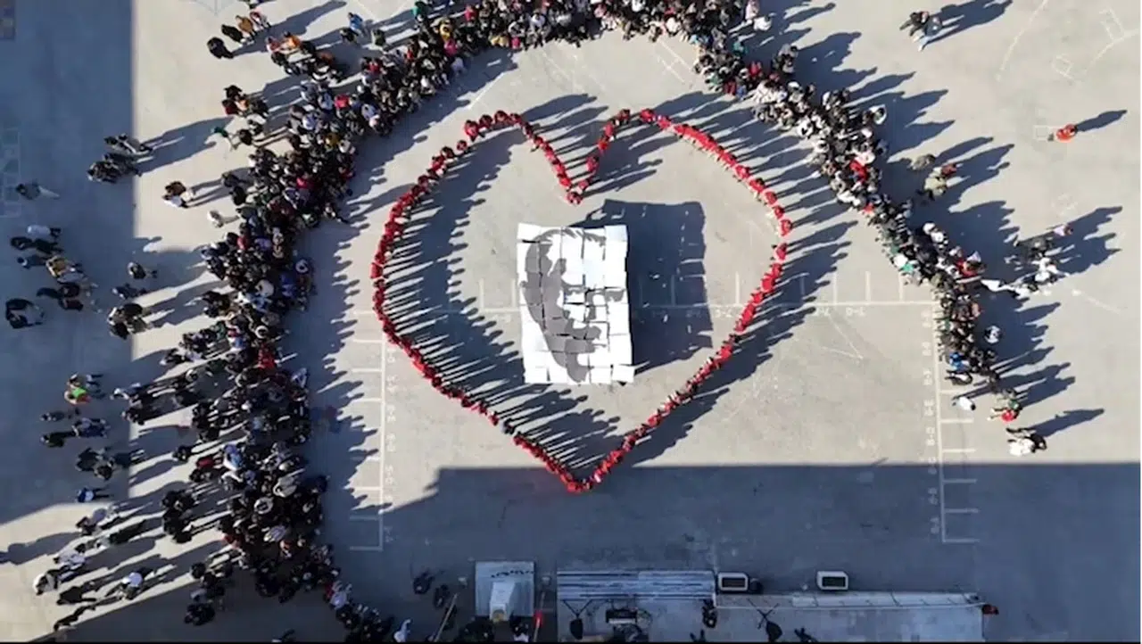 Okul bahçesinde düzenlenen anma etkinlikleri kapsamında kalp içinde Atatürk portresi oluşturuldu.