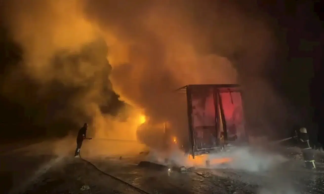 Zeki D. idaresindeki kumaş yüklü 27 JF 080 plakalı tırda D100 kara yolu Pelitçik köyü yakınlarında henüz bilinmeyen nedenle yangın çıktı.