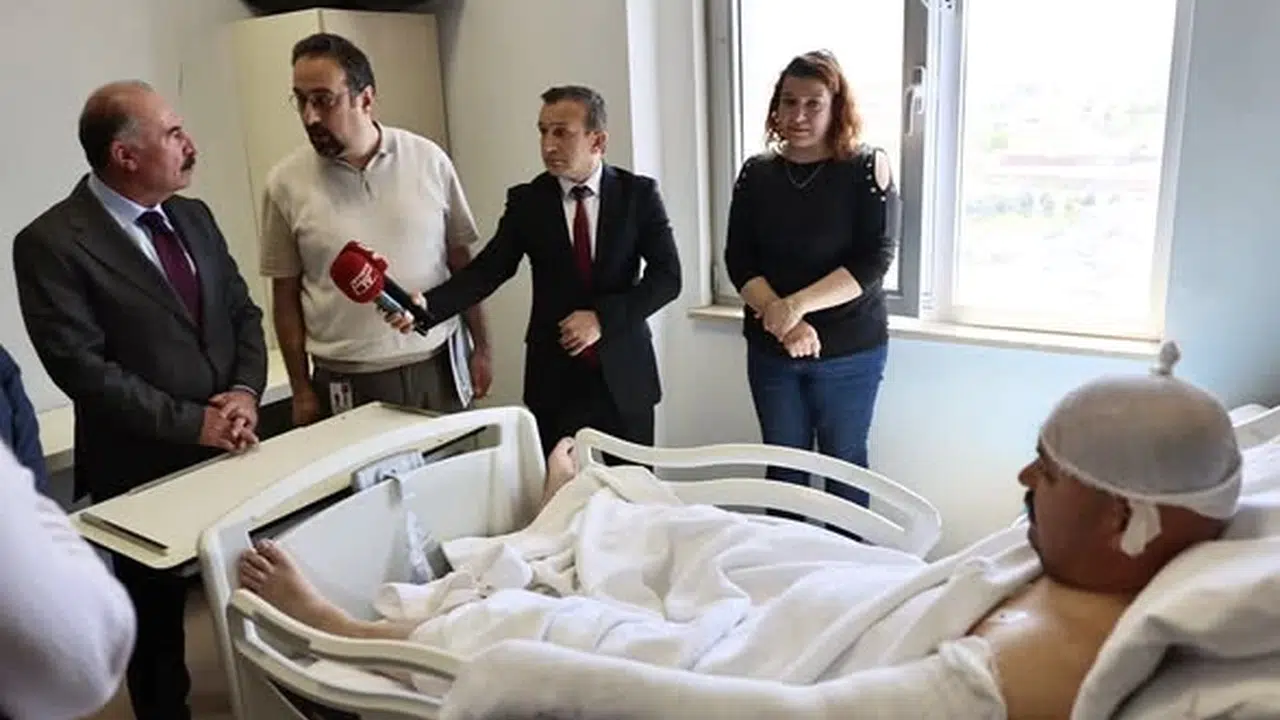 Patlamanın ardından Erol Olçok Eğitim ve Araştırma Hastanesi'ne giden Çorum Valisi Ali Çalgan, tedavi gören işçileri ziyaret ederek geçmiş olsun dileklerini iletti. (DHA)